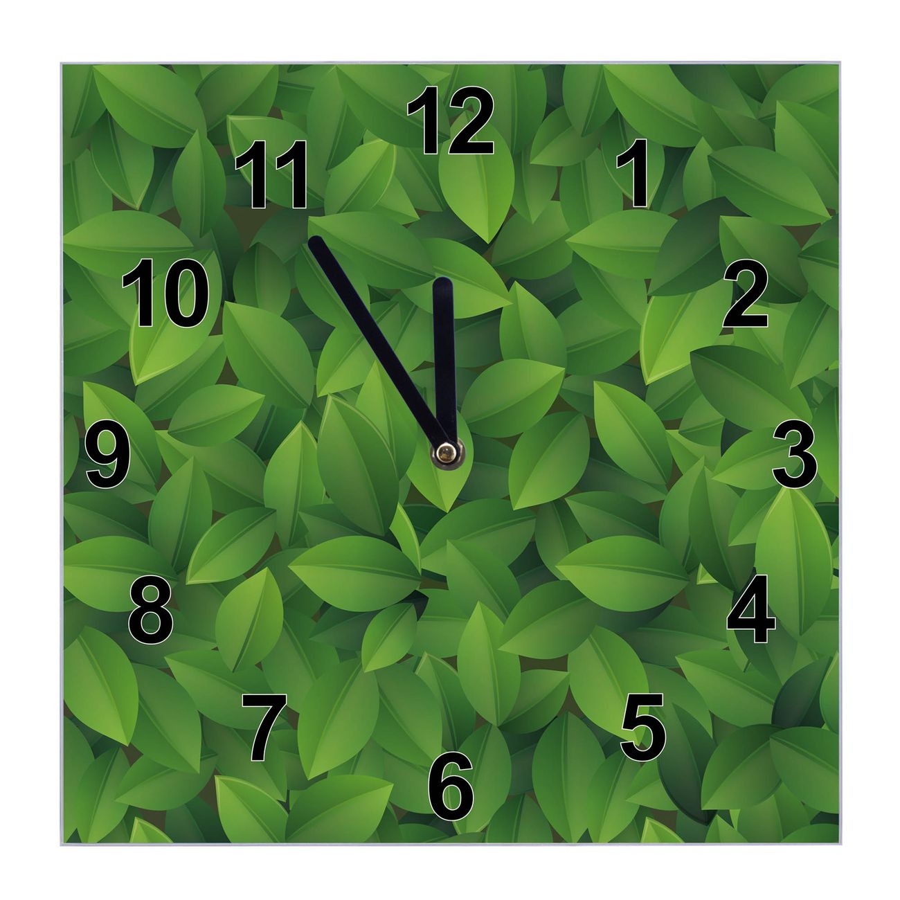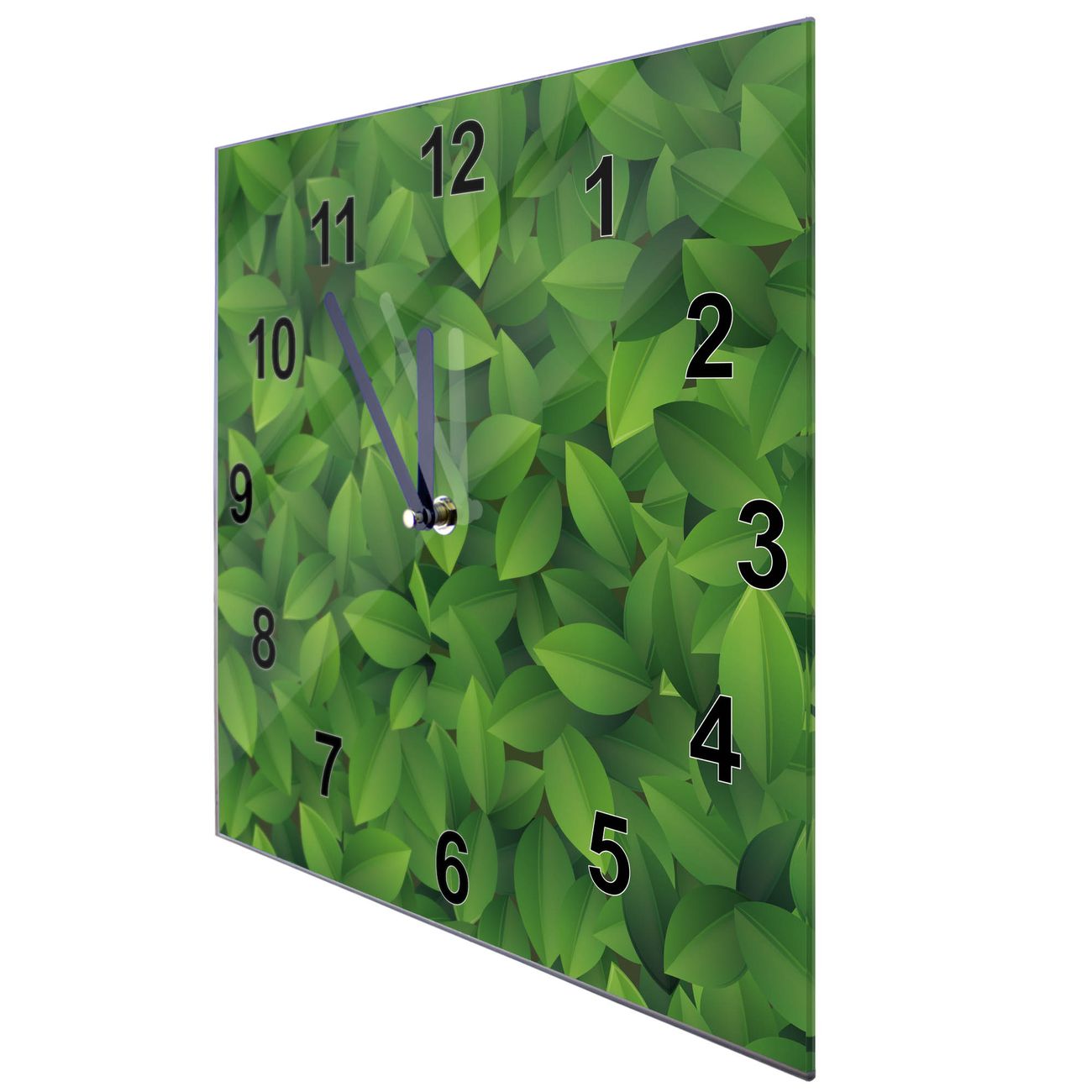 FUNKTION: Mit der banjado Wanduhr aus Glas mit dem Motiv Grüne Blätter behalten Sie die Zeit immer im Blick, stilsicher und zuverlässig erkennen Sie auf einen Blick was die Stunde geschlagen hat. DESIGN: Die schlichte Form der Uhr sowie das individuelle Motiv passen sich hervorragend jedem Wohnraumkonzept an, egal ob klassisch, nostalgisch oder modern. DETAILS: Die Glasuhr ist quadratisch, 30 x 30cm groß und verfügt über ein geräuscharmes Uhrwerk mit schwarzen Zeigern. Das Motiv Grüne Blätter befindet sich effektvoll hinter Glas. NUTZEN: Die banjado Glas Wanduhr verbindet Design und Funktion. Perfekt für Küche, Büro, Wohnzimmer oder Kinderzimmer, haben Sie die Zeit im Blick und eine schöne Wanddekoration. BANJADO: Wir fertigen alle Wanduhren auf Bestellung von Hand, erfüllen dabei auch gern Sonderwünsche. Wir wünschen viel Freude bei der Auswahl eines schönen Motivs. Herzlichst, banjado aus Sachsen