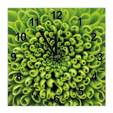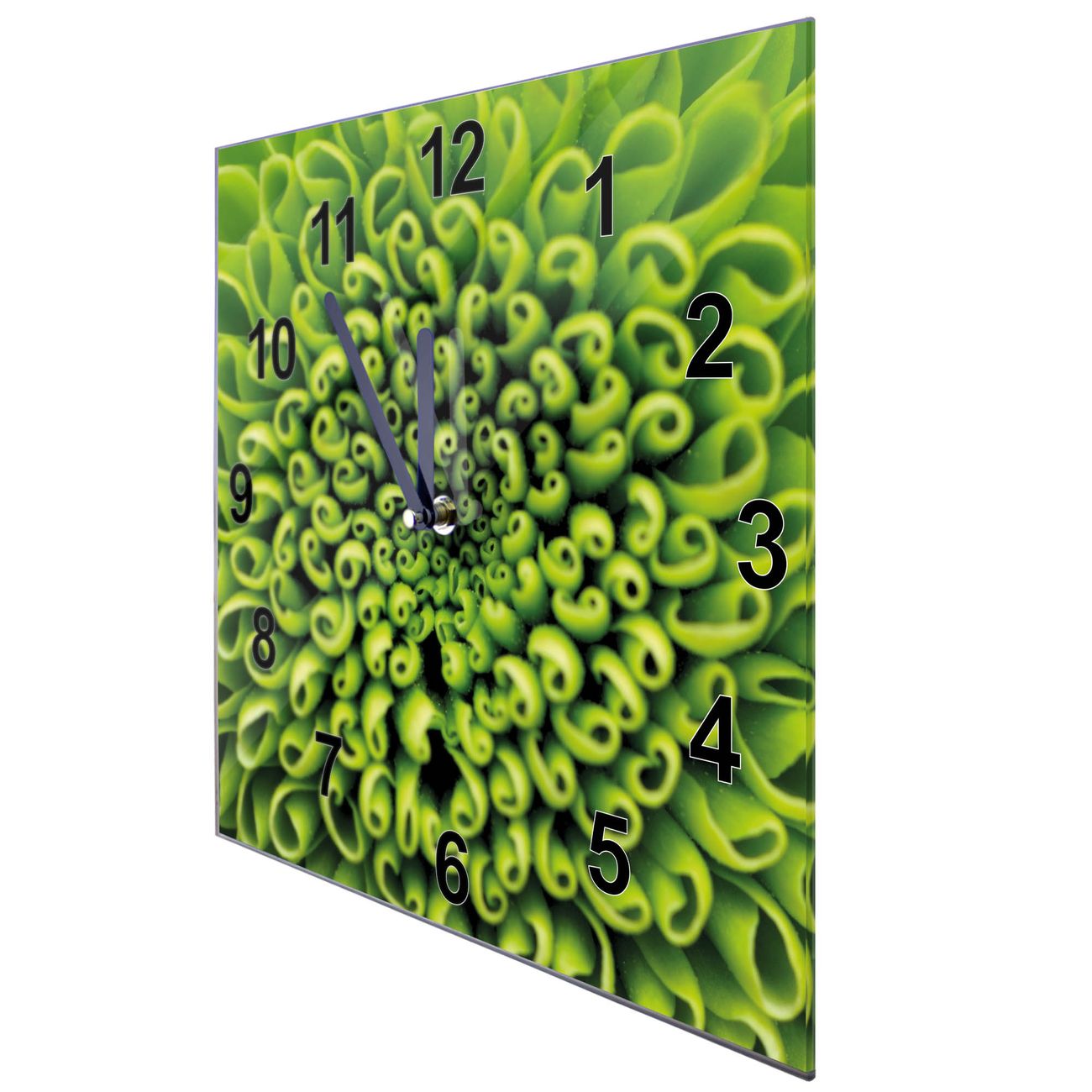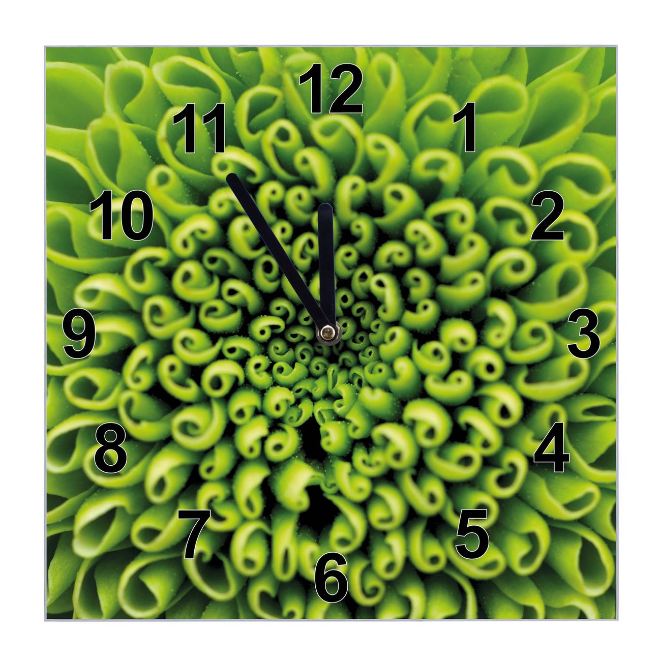 Glasuhr quadratisch Motiv Grüne Chrysantheme