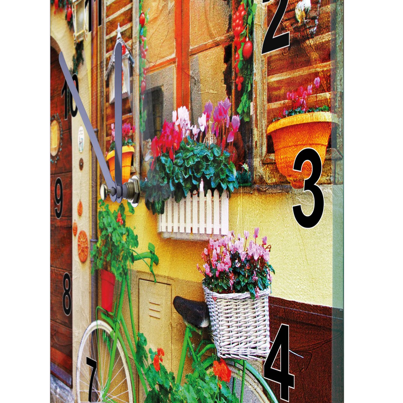 Glasuhr quadratisch Motiv Grünes Fahrrad
