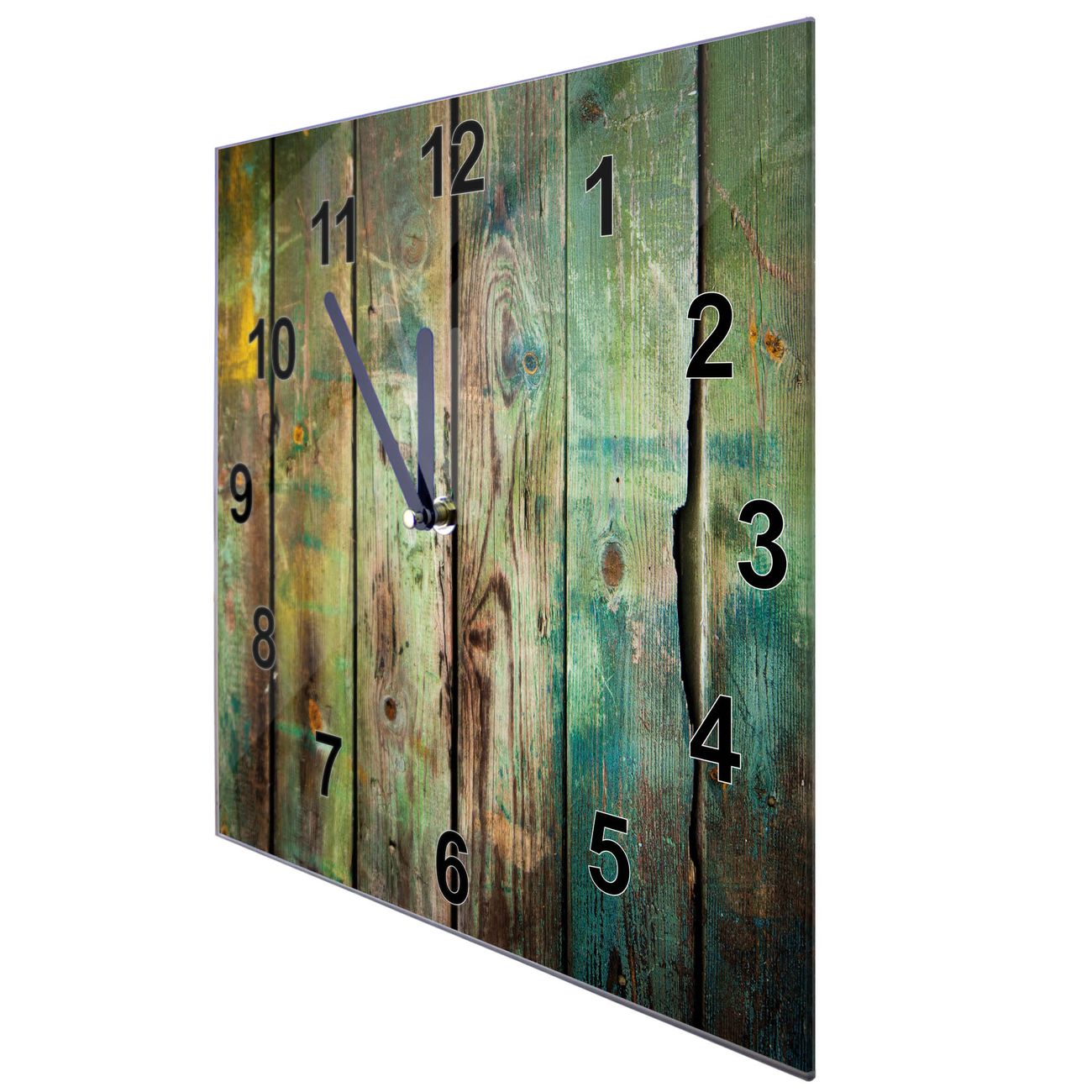 Glasuhr quadratisch Motiv Grünes Holz