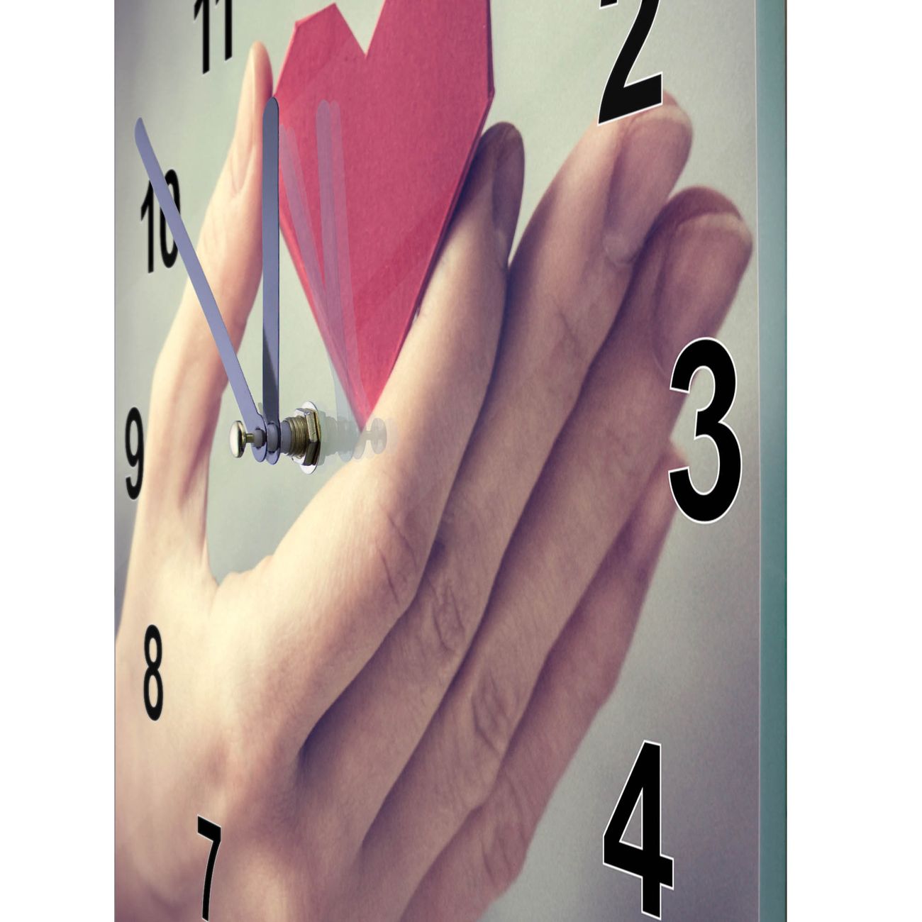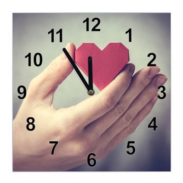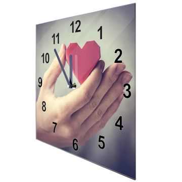 Glasuhr quadratisch Motiv Hand Aufs Herz