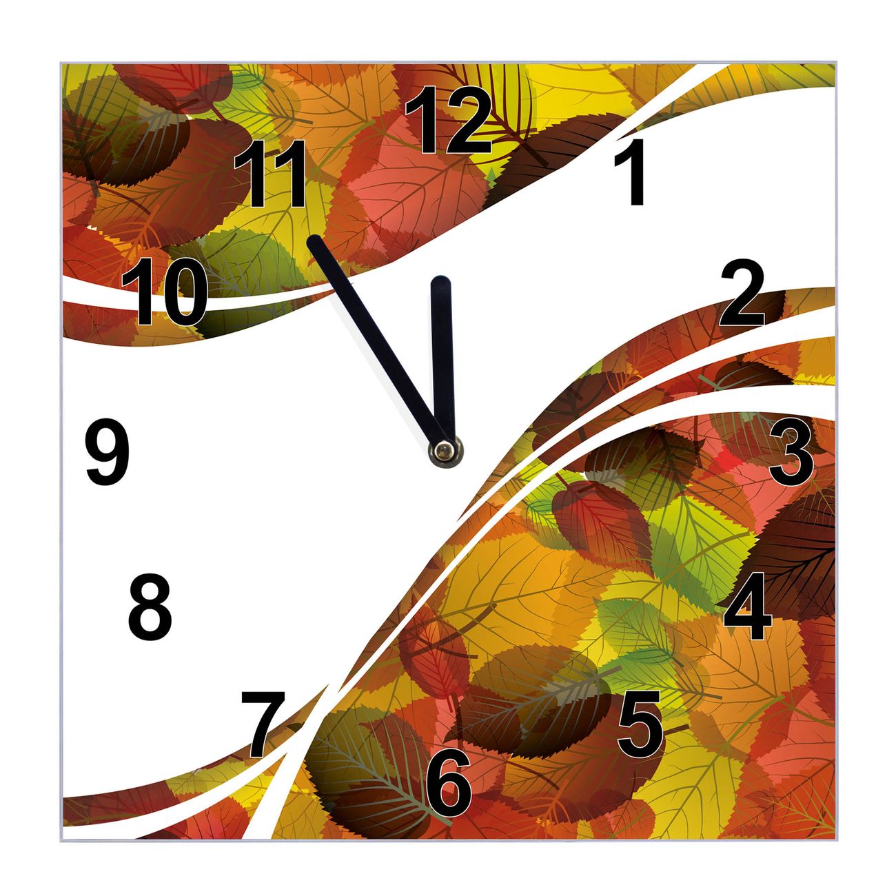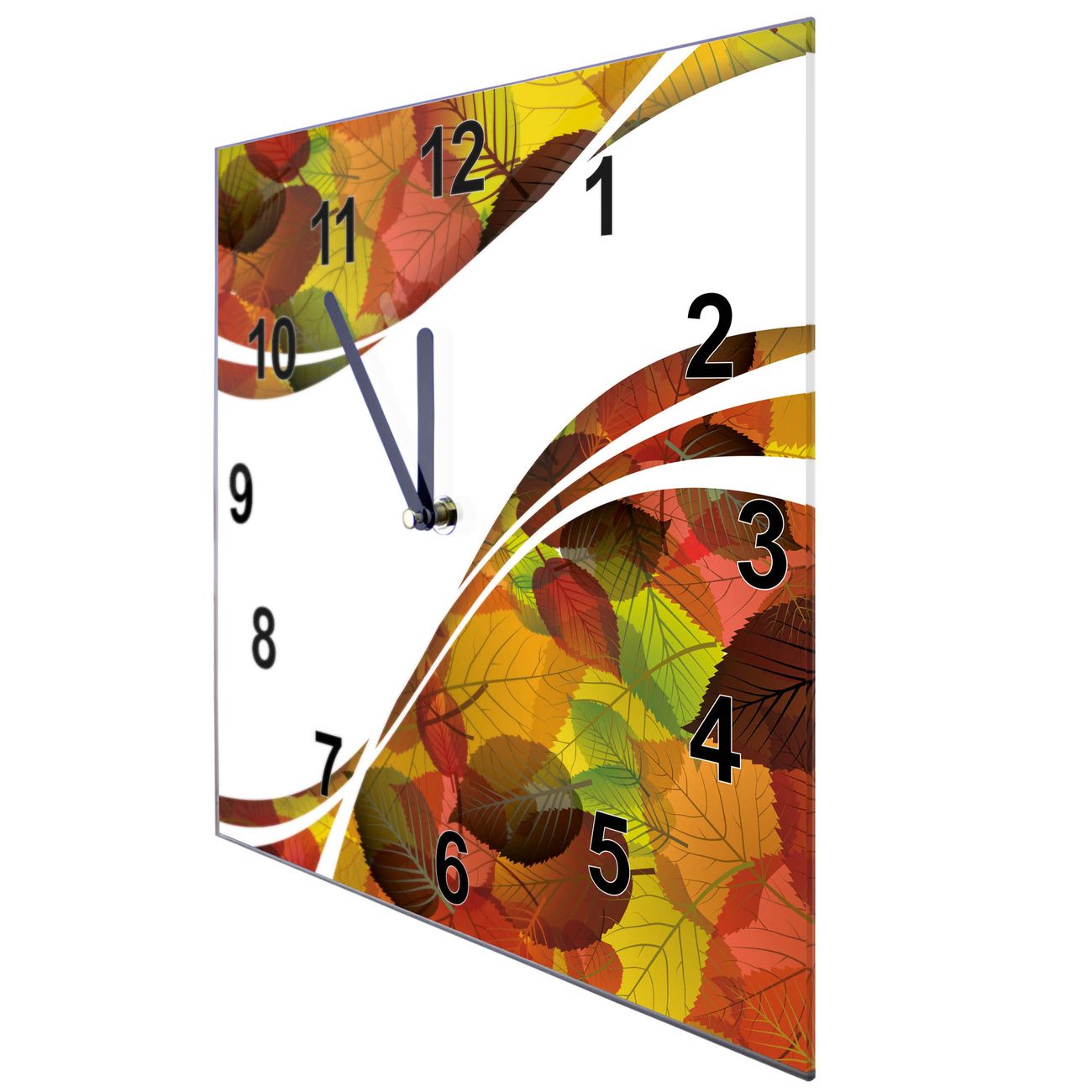 Glasuhr quadratisch Motiv Herbstlaub