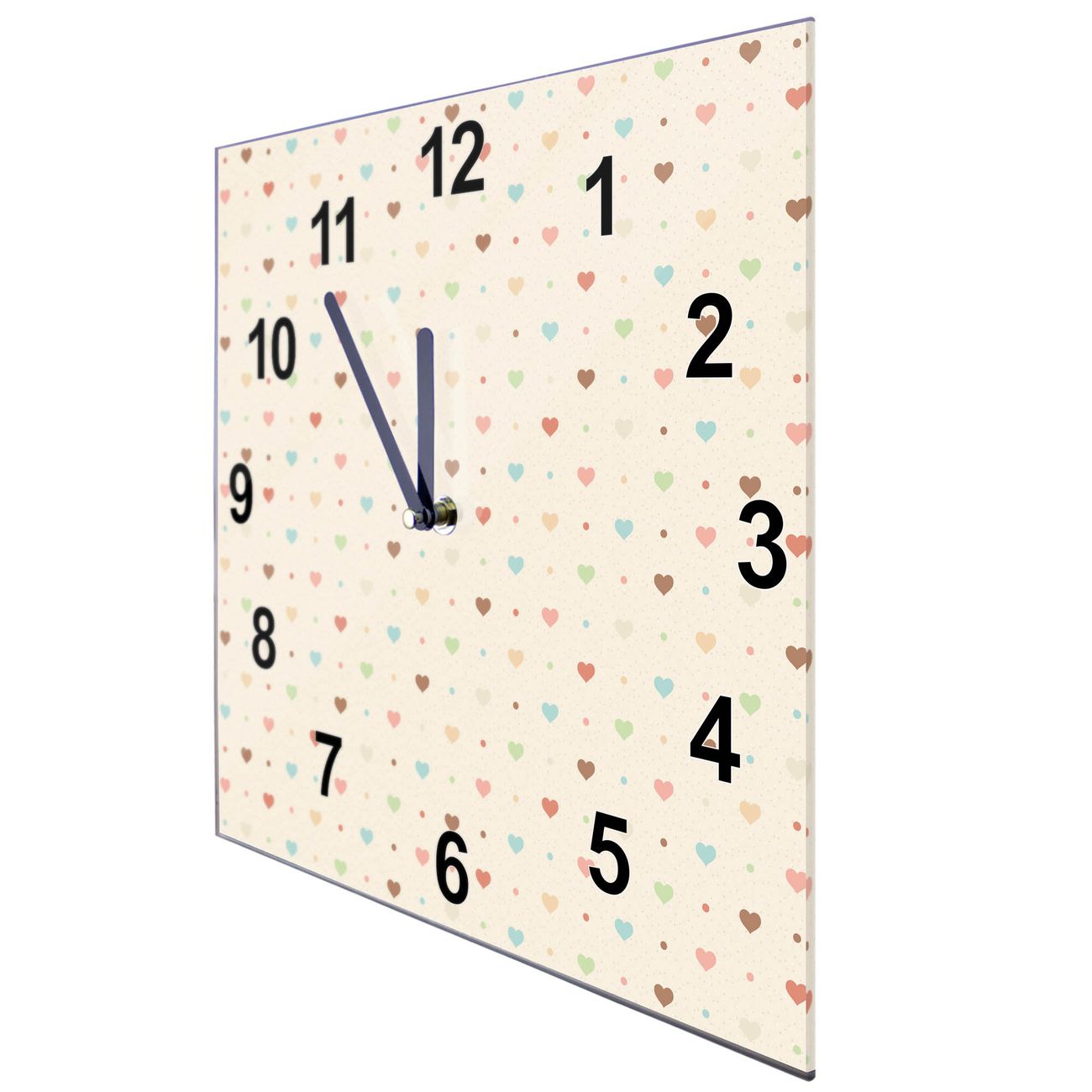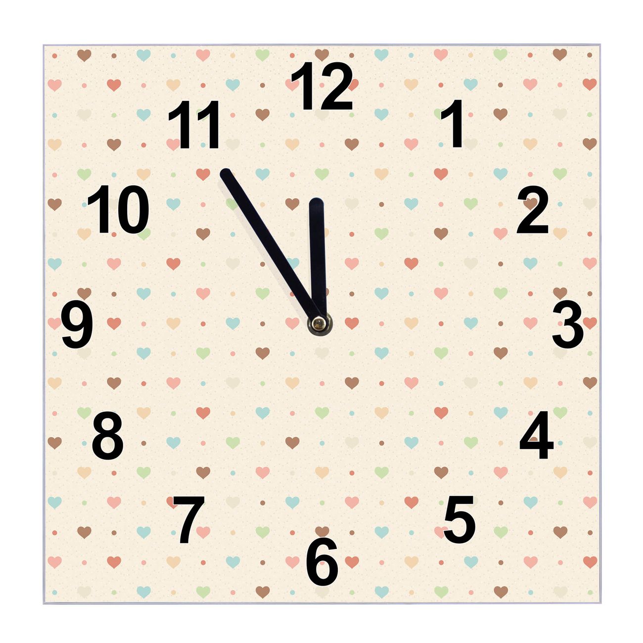 FUNKTION: Mit der banjado Wanduhr aus Glas mit dem Motiv Herzen bunt behalten Sie die Zeit immer im Blick, stilsicher und zuverlässig erkennen Sie auf einen Blick was die Stunde geschlagen hat. DESIGN: Die schlichte Form der Uhr sowie das individuelle Motiv passen sich hervorragend jedem Wohnraumkonzept an, egal ob klassisch, nostalgisch oder modern. DETAILS: Die Glasuhr ist quadratisch, 30 x 30cm groß und verfügt über ein geräuscharmes Uhrwerk mit schwarzen Zeigern. Das Motiv Herzen bunt befindet sich effektvoll hinter Glas. NUTZEN: Die banjado Glas Wanduhr verbindet Design und Funktion. Perfekt für Küche, Büro, Wohnzimmer oder Kinderzimmer, haben Sie die Zeit im Blick und eine schöne Wanddekoration. BANJADO: Wir fertigen alle Wanduhren auf Bestellung von Hand, erfüllen dabei auch gern Sonderwünsche. Wir wünschen viel Freude bei der Auswahl eines schönen Motivs. Herzlichst, banjado aus Sachsen