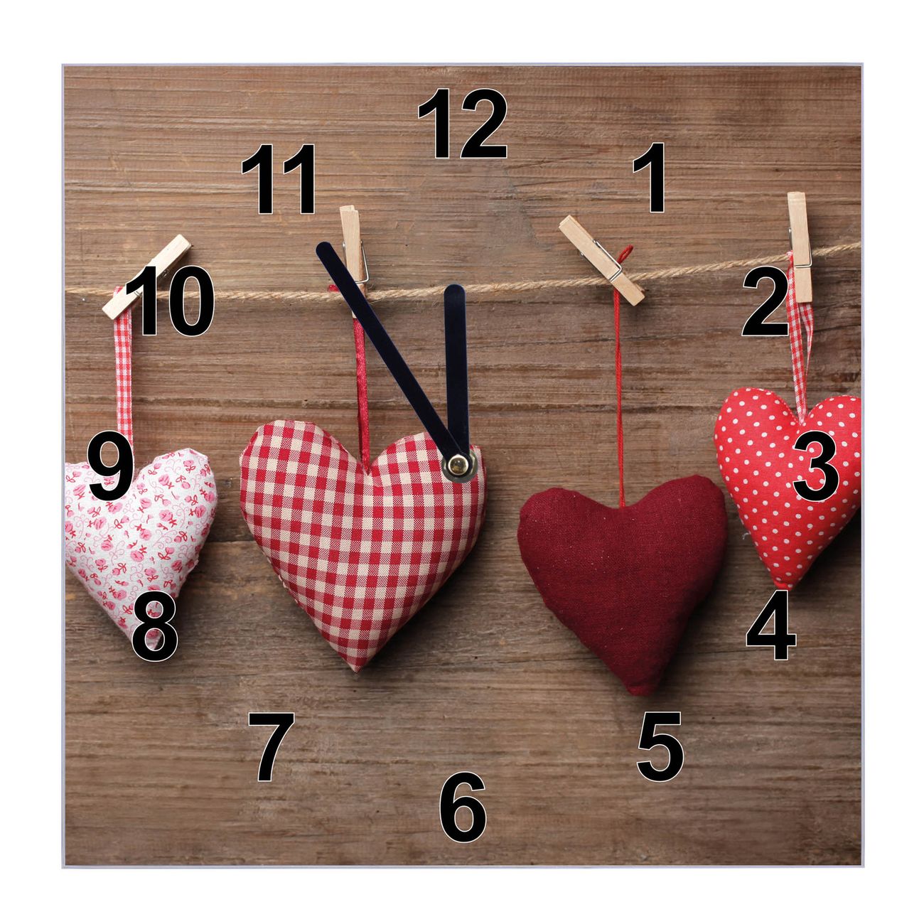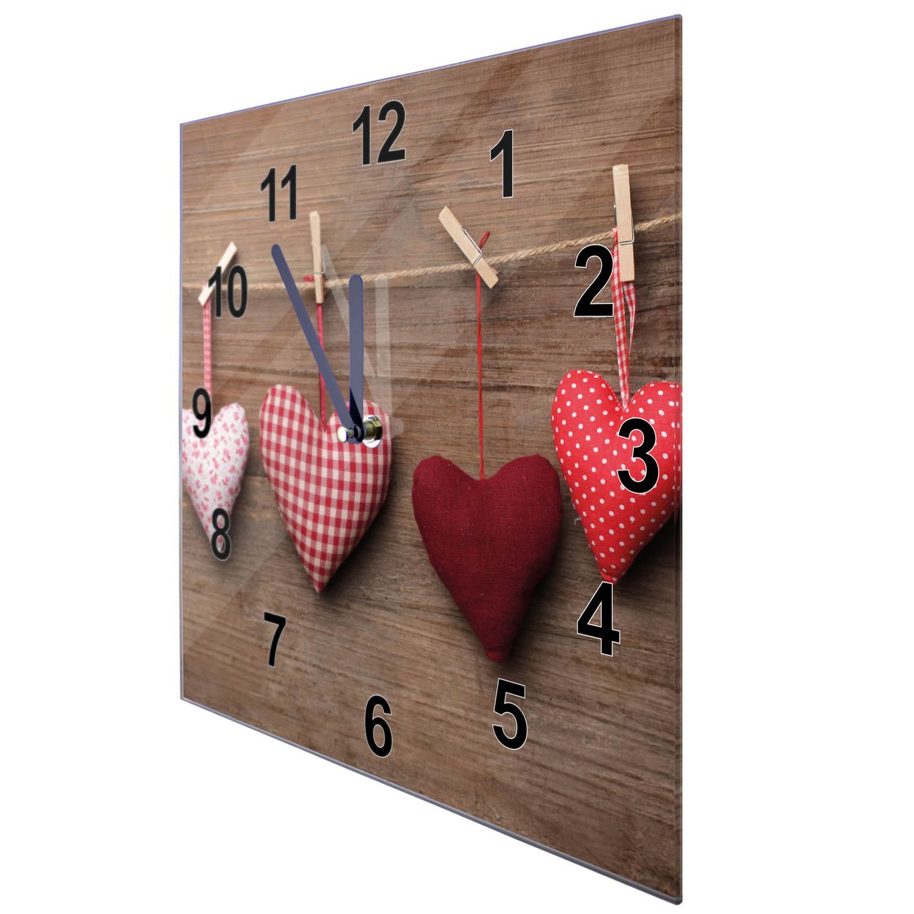 Glasuhr quadratisch Motiv Herzen