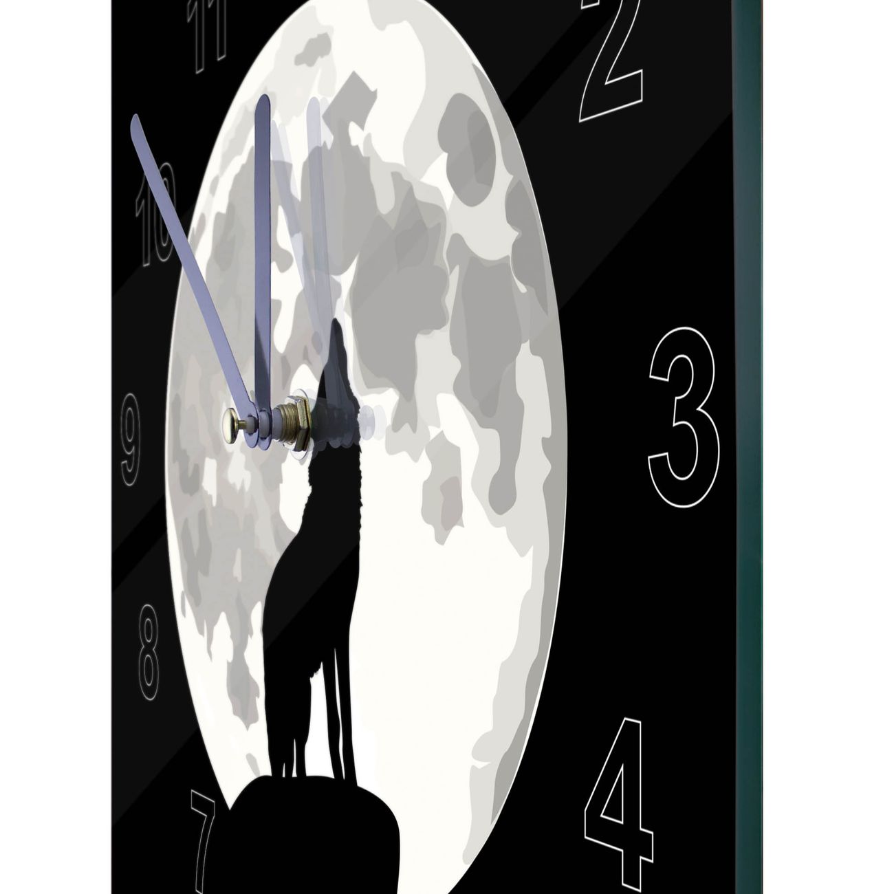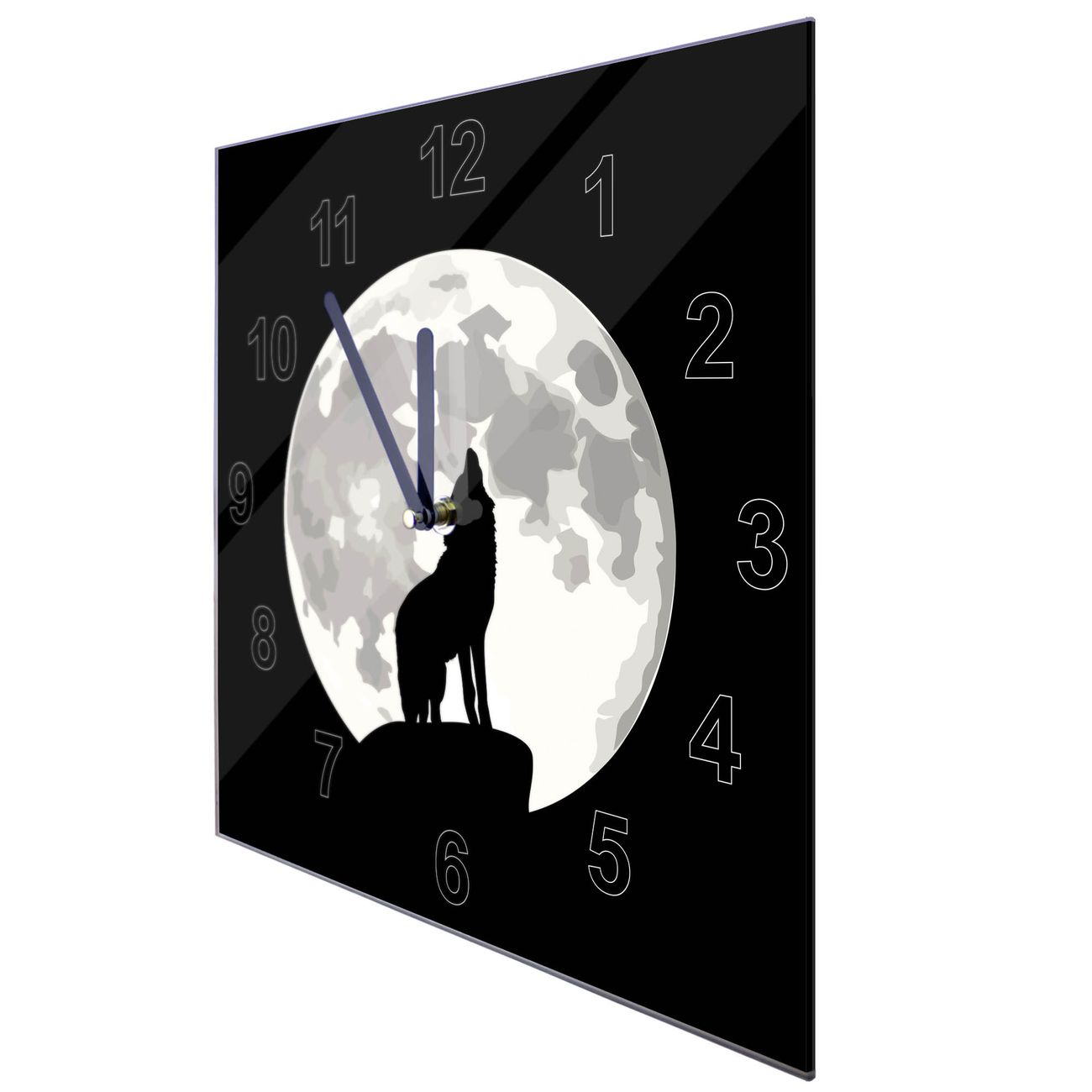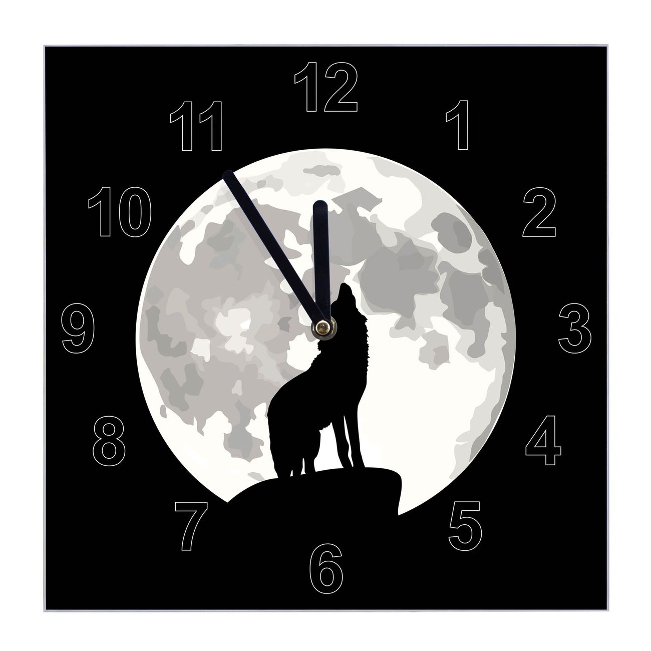 Glasuhr quadratisch Motiv Heulender Wolf SW