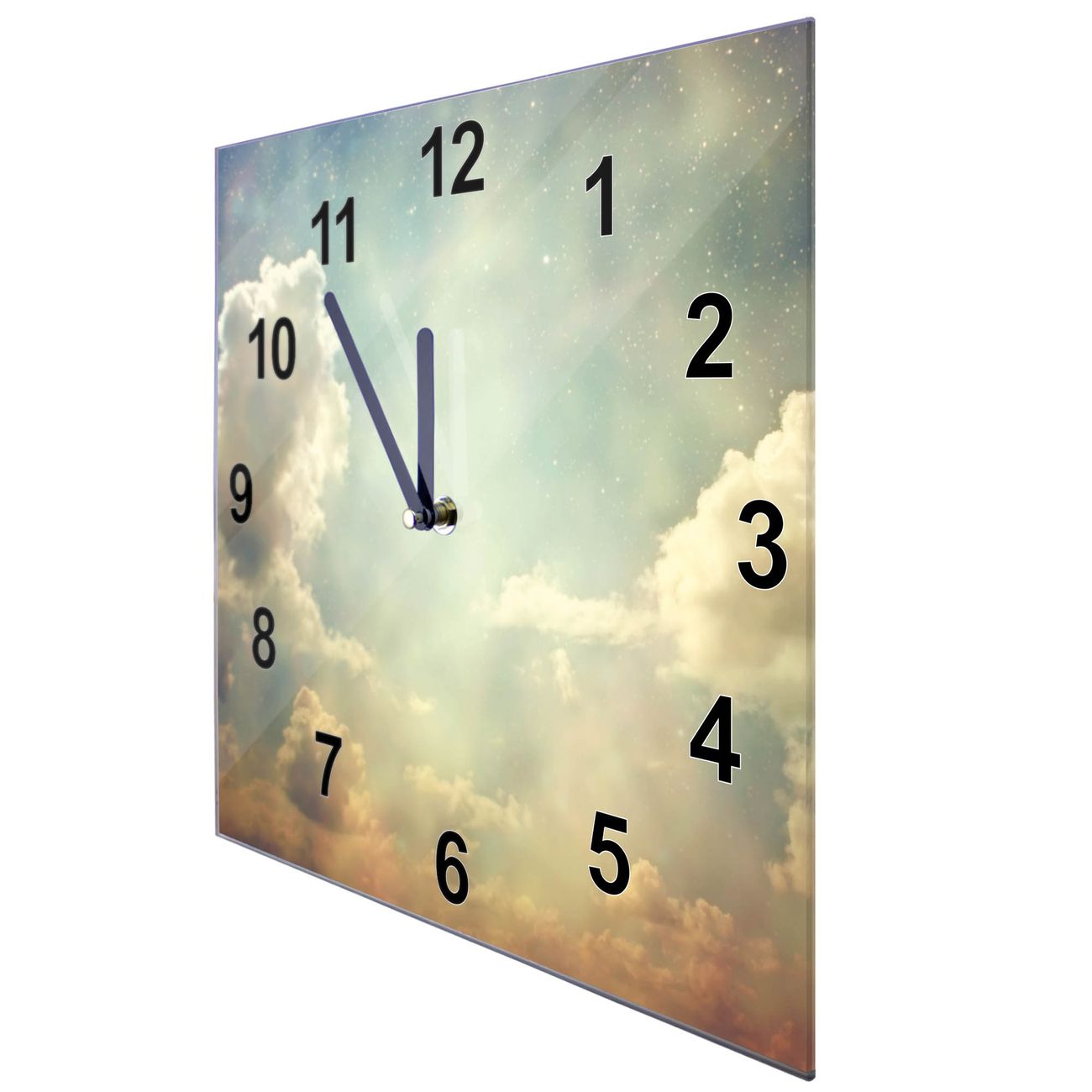 Glasuhr quadratisch Motiv Himmel Vintage