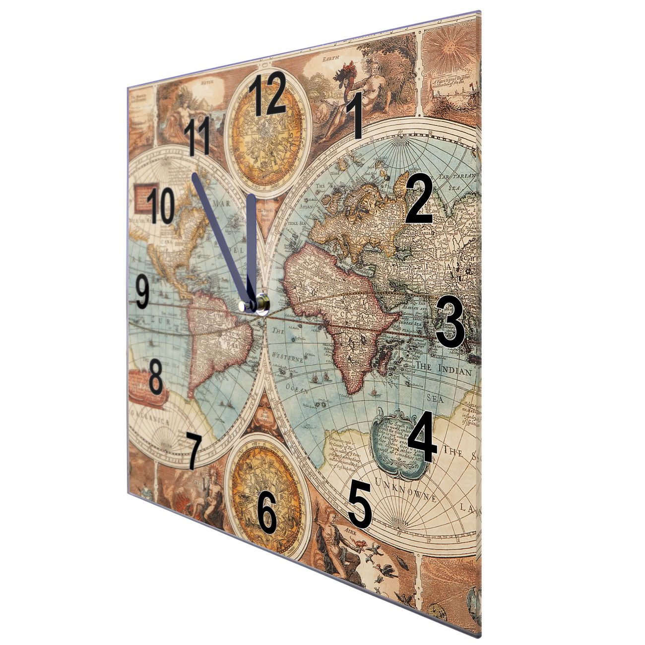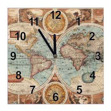 Glasuhr quadratisch Motiv Historische Weltkarte