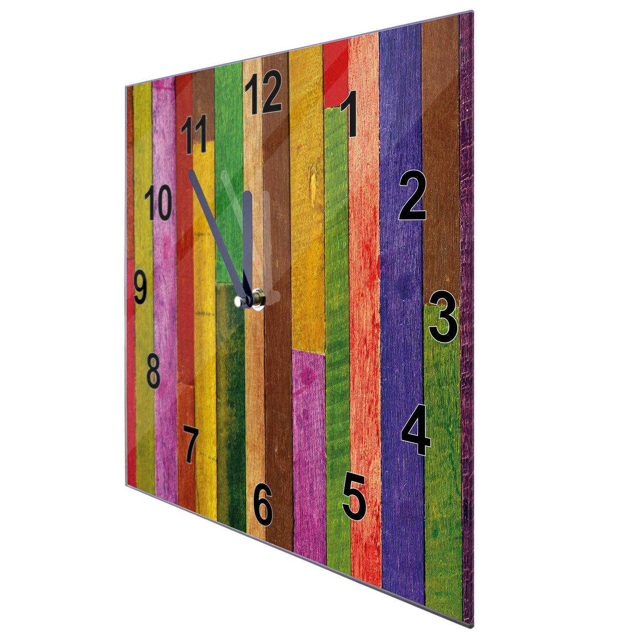 Glasuhr quadratisch Motiv Holz Collage Bunt