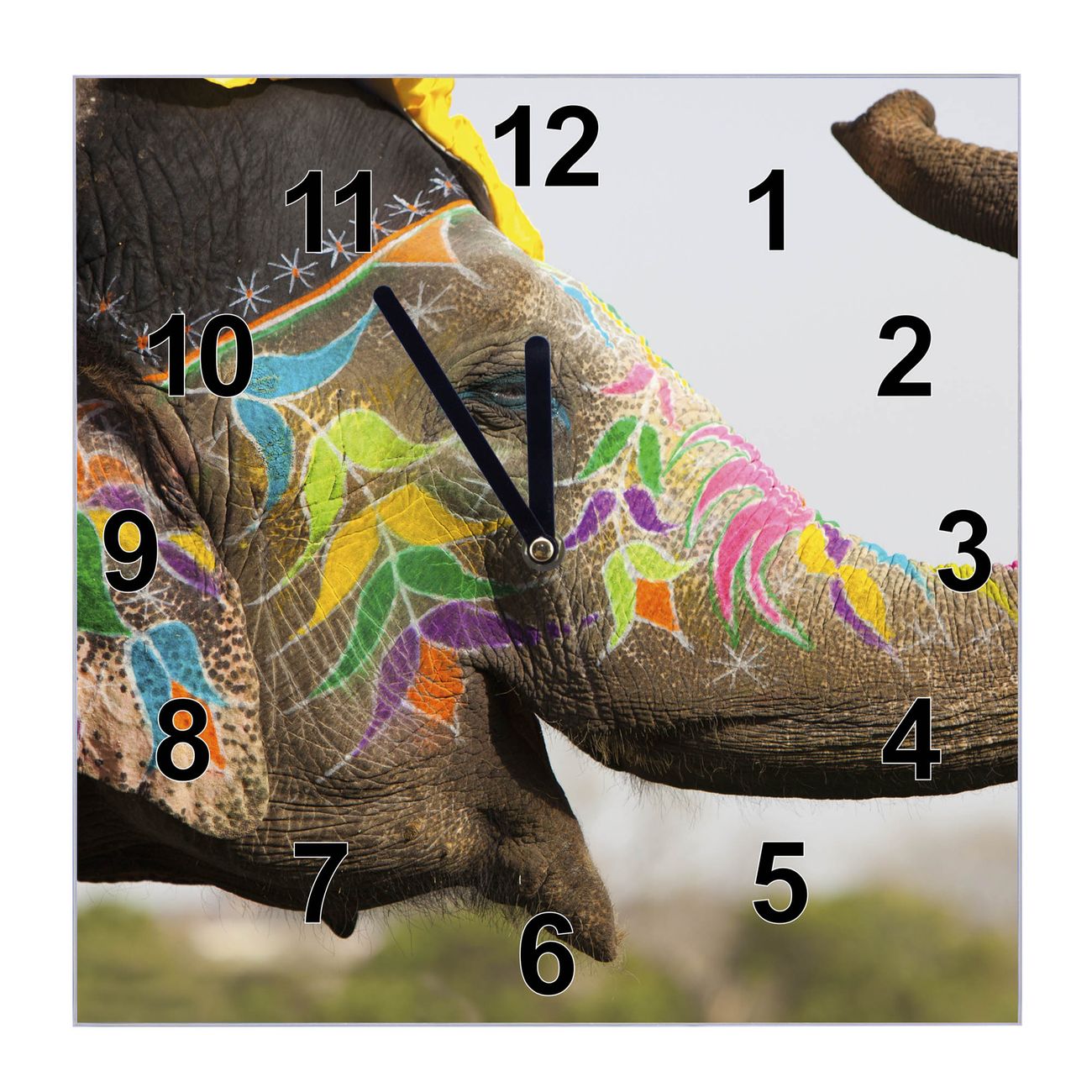 Glasuhr quadratisch Motiv Indischer Elephant