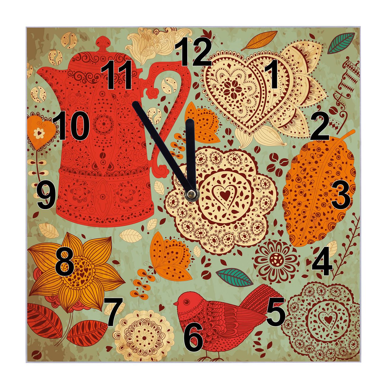 Glasuhr quadratisch Motiv Indischer Kaffee