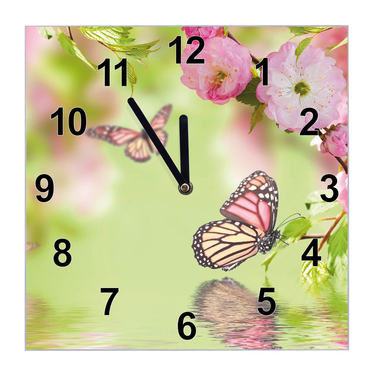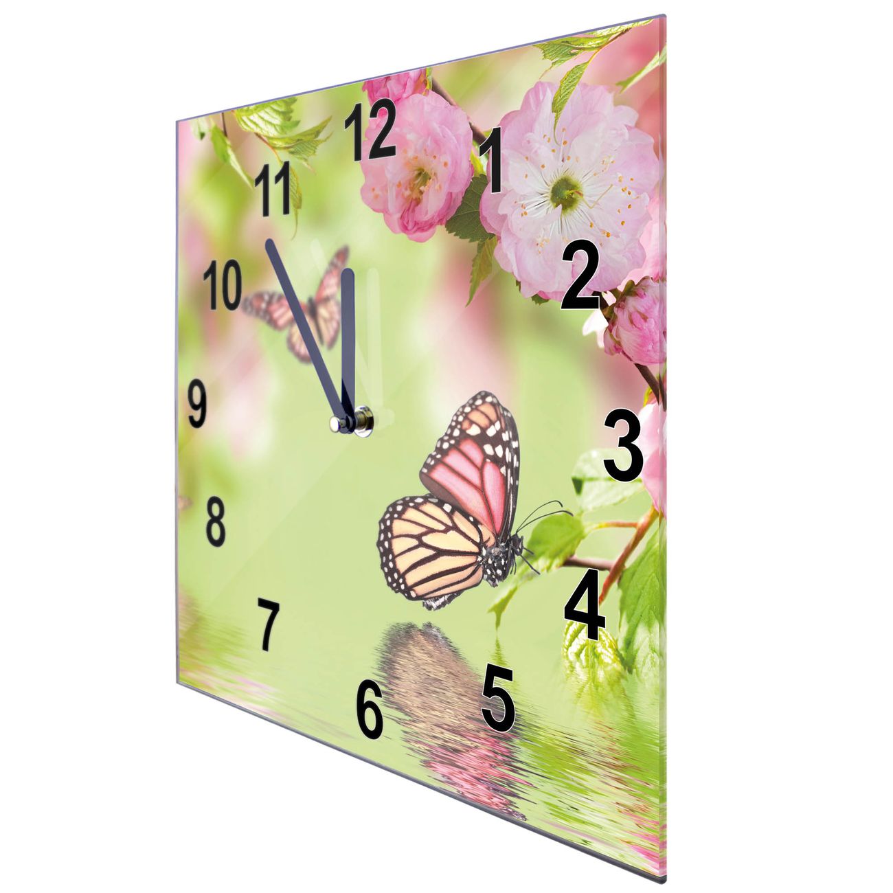 Glasuhr quadratisch Motiv Japanische Kirschblüte