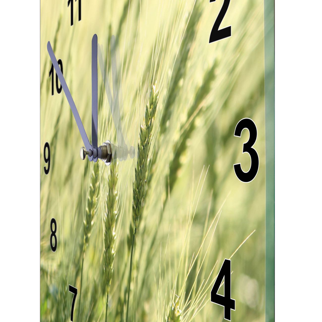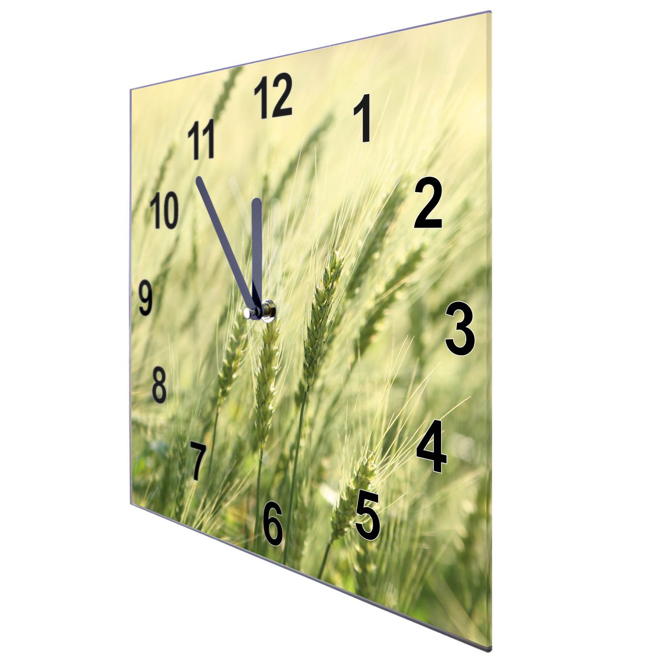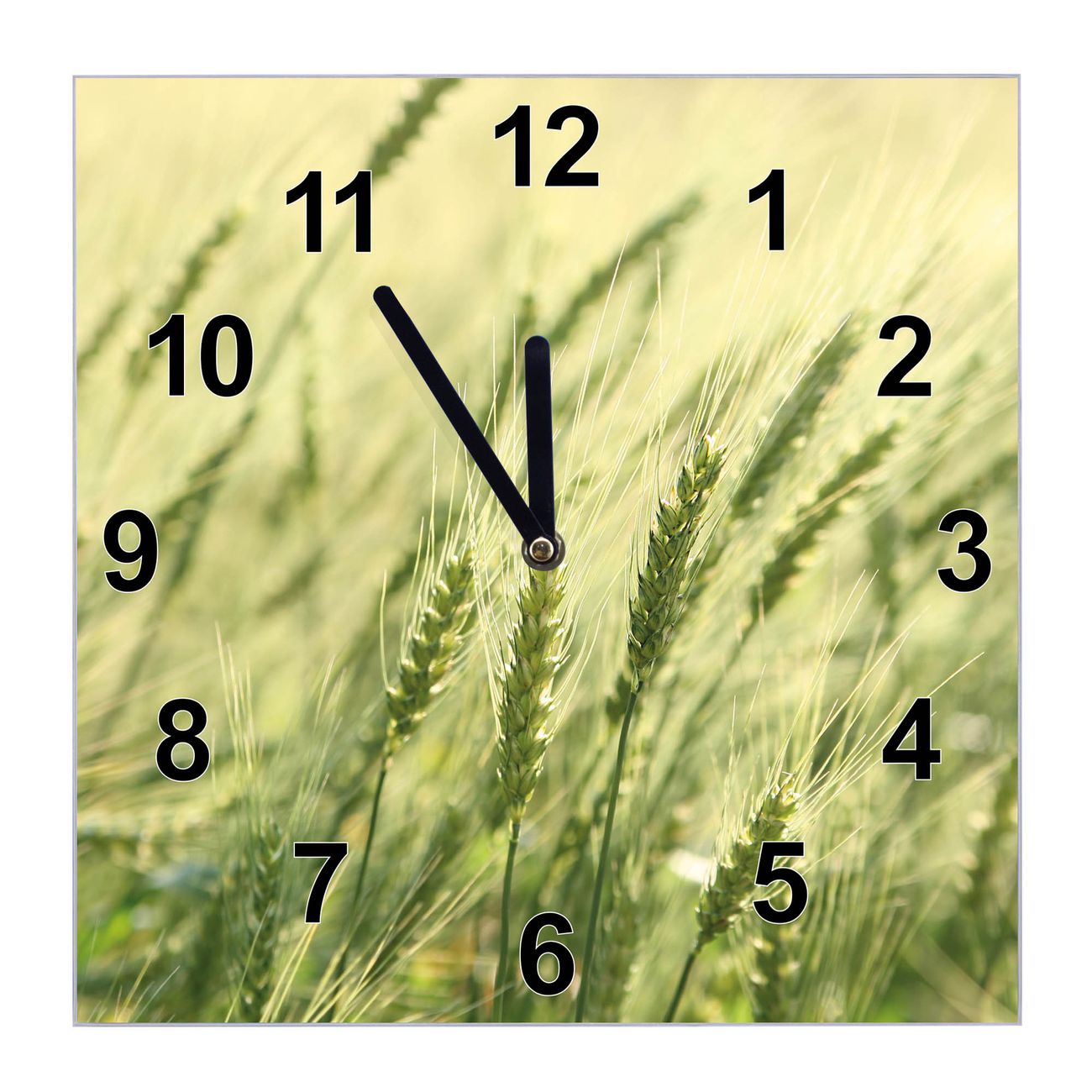 FUNKTION: Mit der banjado Wanduhr aus Glas mit dem Motiv Junges Getreide behalten Sie die Zeit immer im Blick, stilsicher und zuverlässig erkennen Sie auf einen Blick was die Stunde geschlagen hat. DESIGN: Die schlichte Form der Uhr sowie das individuelle Motiv passen sich hervorragend jedem Wohnraumkonzept an, egal ob klassisch, nostalgisch oder modern. DETAILS: Die Glasuhr ist quadratisch, 30 x 30cm groß und verfügt über ein geräuscharmes Uhrwerk mit schwarzen Zeigern. Das Motiv Junges Getreide befindet sich effektvoll hinter Glas. NUTZEN: Die banjado Glas Wanduhr verbindet Design und Funktion. Perfekt für Küche, Büro, Wohnzimmer oder Kinderzimmer, haben Sie die Zeit im Blick und eine schöne Wanddekoration. BANJADO: Wir fertigen alle Wanduhren auf Bestellung von Hand, erfüllen dabei auch gern Sonderwünsche. Wir wünschen viel Freude bei der Auswahl eines schönen Motivs. Herzlichst, banjado aus Sachsen