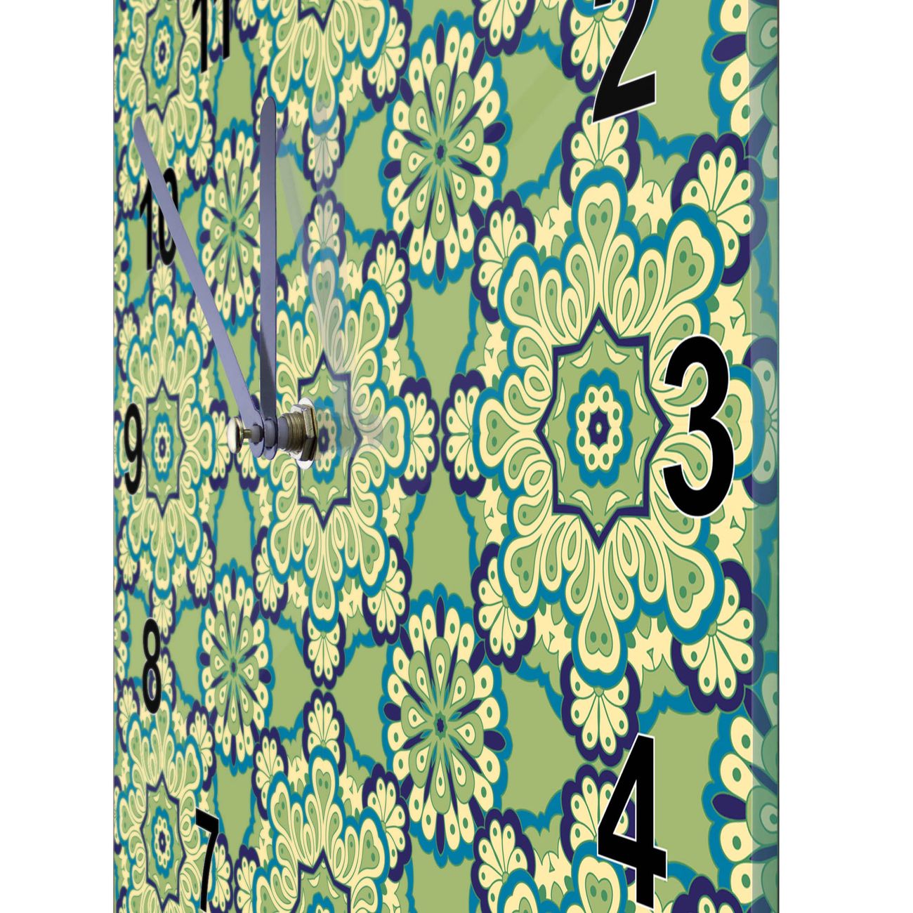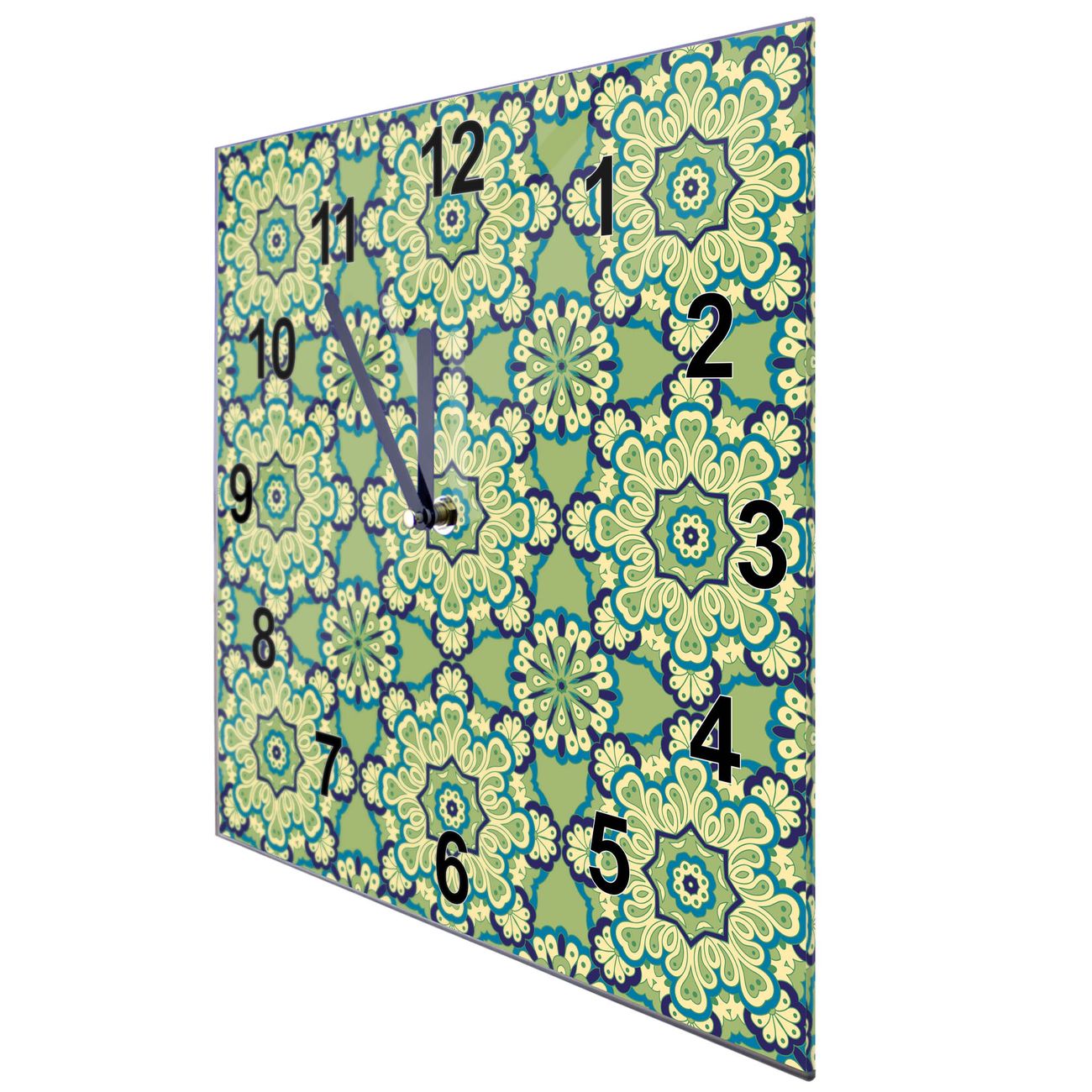 Glasuhr quadratisch Motiv Kaleidoscop Grün