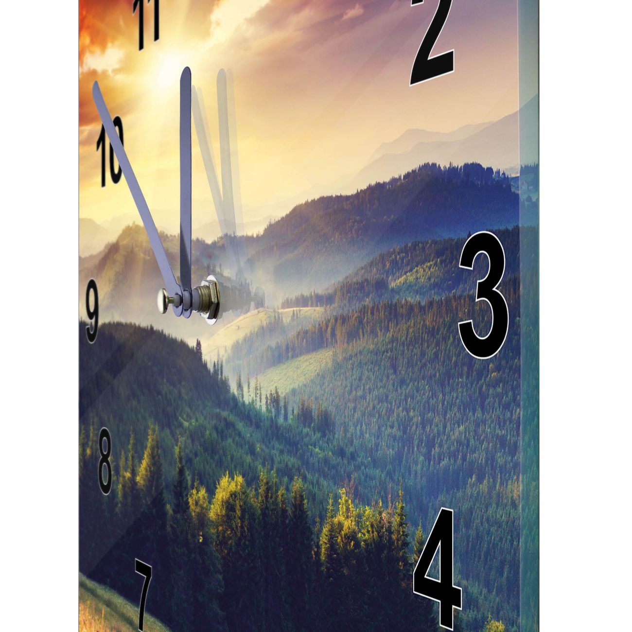 Glasuhr quadratisch Motiv Karpaten Sonnenuntergang
