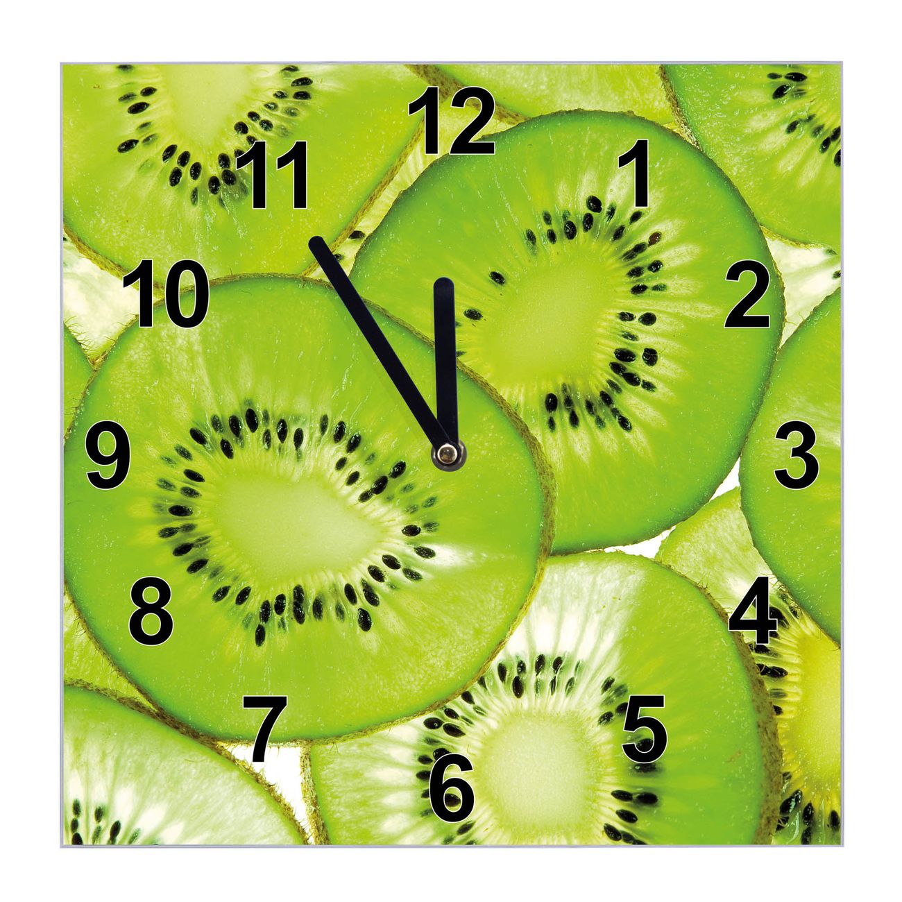 FUNKTION: Mit der banjado Wanduhr aus Glas mit dem Motiv Kiwi behalten Sie die Zeit immer im Blick, stilsicher und zuverlässig erkennen Sie auf einen Blick was die Stunde geschlagen hat. DESIGN: Die schlichte Form der Uhr sowie das individuelle Motiv passen sich hervorragend jedem Wohnraumkonzept an, egal ob klassisch, nostalgisch oder modern. DETAILS: Die Glasuhr ist quadratisch, 30 x 30cm groß und verfügt über ein geräuscharmes Uhrwerk mit schwarzen Zeigern. Das Motiv Kiwi befindet sich effektvoll hinter Glas. NUTZEN: Die banjado Glas Wanduhr verbindet Design und Funktion. Perfekt für Küche, Büro, Wohnzimmer oder Kinderzimmer, haben Sie die Zeit im Blick und eine schöne Wanddekoration. BANJADO: Wir fertigen alle Wanduhren auf Bestellung von Hand, erfüllen dabei auch gern Sonderwünsche. Wir wünschen viel Freude bei der Auswahl eines schönen Motivs. Herzlichst, banjado aus Sachsen