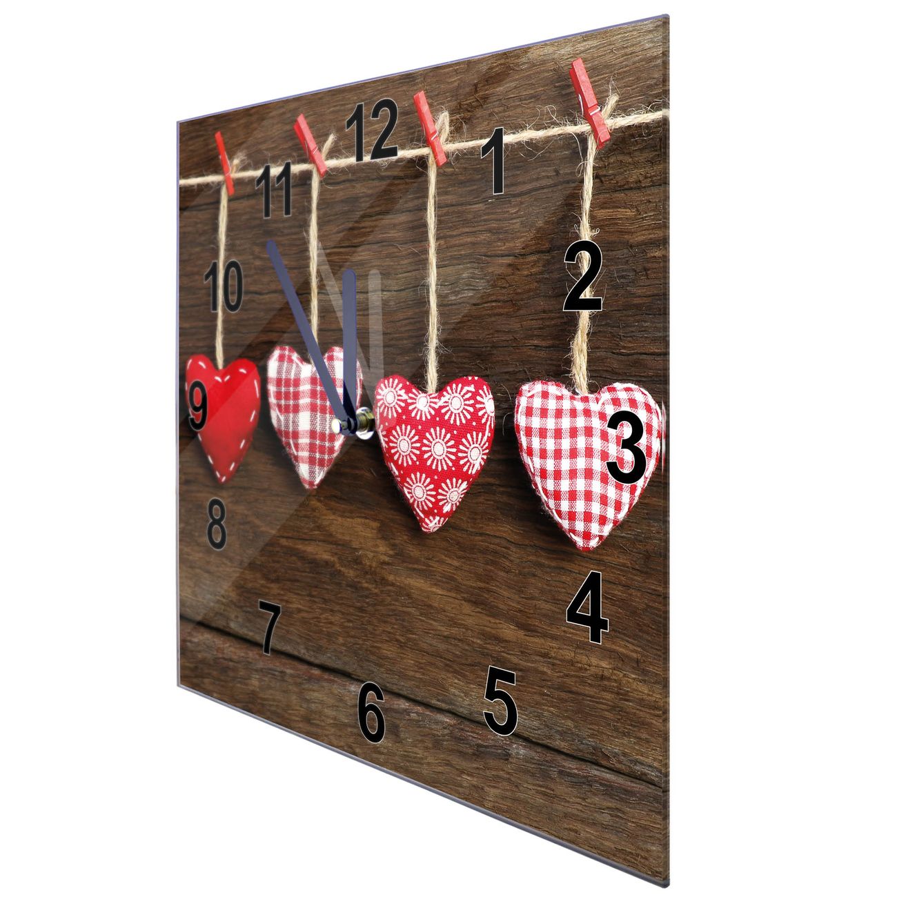 FUNKTION: Mit der banjado Wanduhr aus Glas mit dem Motiv Kleine Herzen behalten Sie die Zeit immer im Blick, stilsicher und zuverlässig erkennen Sie auf einen Blick was die Stunde geschlagen hat. DESIGN: Die schlichte Form der Uhr sowie das individuelle Motiv passen sich hervorragend jedem Wohnraumkonzept an, egal ob klassisch, nostalgisch oder modern. DETAILS: Die Glasuhr ist quadratisch, 30 x 30cm groß und verfügt über ein geräuscharmes Uhrwerk mit schwarzen Zeigern. Das Motiv Kleine Herzen befindet sich effektvoll hinter Glas. NUTZEN: Die banjado Glas Wanduhr verbindet Design und Funktion. Perfekt für Küche, Büro, Wohnzimmer oder Kinderzimmer, haben Sie die Zeit im Blick und eine schöne Wanddekoration. BANJADO: Wir fertigen alle Wanduhren auf Bestellung von Hand, erfüllen dabei auch gern Sonderwünsche. Wir wünschen viel Freude bei der Auswahl eines schönen Motivs. Herzlichst, banjado aus Sachsen