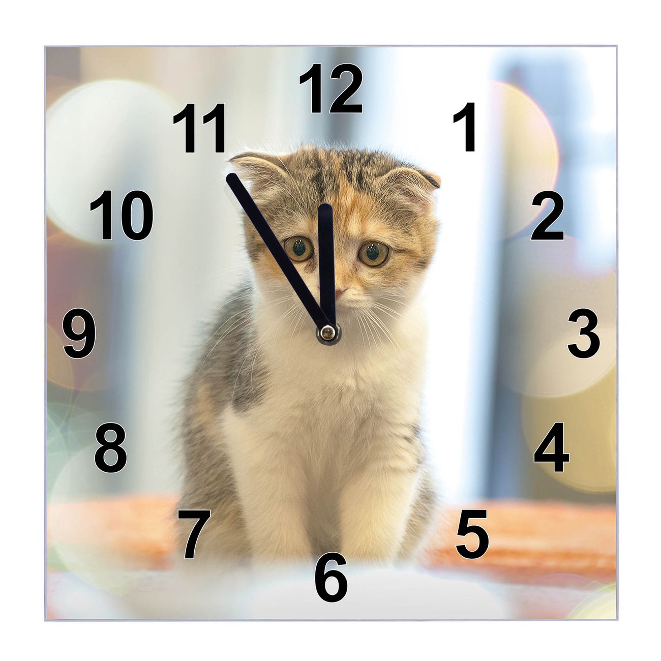 FUNKTION: Mit der banjado Wanduhr aus Glas mit dem Motiv Kleine Katze behalten Sie die Zeit immer im Blick, stilsicher und zuverlässig erkennen Sie auf einen Blick was die Stunde geschlagen hat. DESIGN: Die schlichte Form der Uhr sowie das individuelle Motiv passen sich hervorragend jedem Wohnraumkonzept an, egal ob klassisch, nostalgisch oder modern. DETAILS: Die Glasuhr ist quadratisch, 30 x 30cm groß und verfügt über ein geräuscharmes Uhrwerk mit schwarzen Zeigern. Das Motiv Kleine Katze befindet sich effektvoll hinter Glas. NUTZEN: Die banjado Glas Wanduhr verbindet Design und Funktion. Perfekt für Küche, Büro, Wohnzimmer oder Kinderzimmer, haben Sie die Zeit im Blick und eine schöne Wanddekoration. BANJADO: Wir fertigen alle Wanduhren auf Bestellung von Hand, erfüllen dabei auch gern Sonderwünsche. Wir wünschen viel Freude bei der Auswahl eines schönen Motivs. Herzlichst, banjado aus Sachsen
