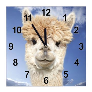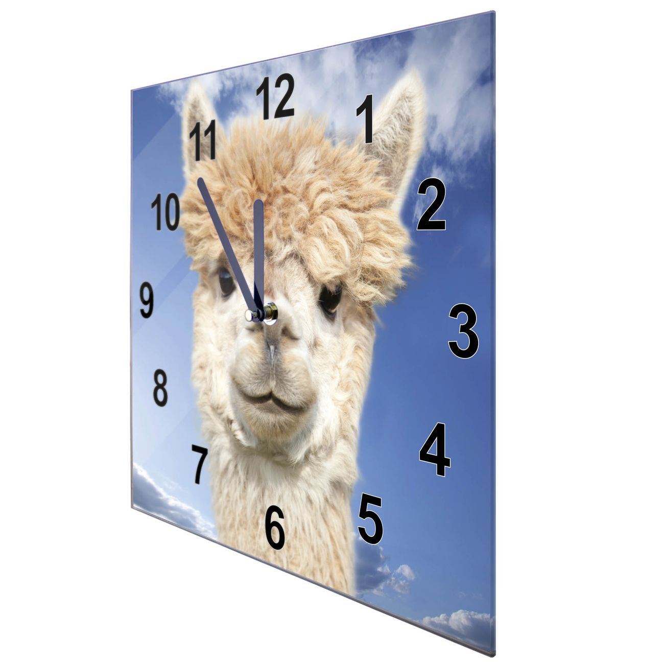 FUNKTION: Mit der banjado Wanduhr aus Glas mit dem Motiv Lama behalten Sie die Zeit immer im Blick, stilsicher und zuverlässig erkennen Sie auf einen Blick was die Stunde geschlagen hat. DESIGN: Die schlichte Form der Uhr sowie das individuelle Motiv passen sich hervorragend jedem Wohnraumkonzept an, egal ob klassisch, nostalgisch oder modern. DETAILS: Die Glasuhr ist quadratisch, 30 x 30cm groß und verfügt über ein geräuscharmes Uhrwerk mit schwarzen Zeigern. Das Motiv Lama befindet sich effektvoll hinter Glas. NUTZEN: Die banjado Glas Wanduhr verbindet Design und Funktion. Perfekt für Küche, Büro, Wohnzimmer oder Kinderzimmer, haben Sie die Zeit im Blick und eine schöne Wanddekoration. BANJADO: Wir fertigen alle Wanduhren auf Bestellung von Hand, erfüllen dabei auch gern Sonderwünsche. Wir wünschen viel Freude bei der Auswahl eines schönen Motivs. Herzlichst, banjado aus Sachsen
