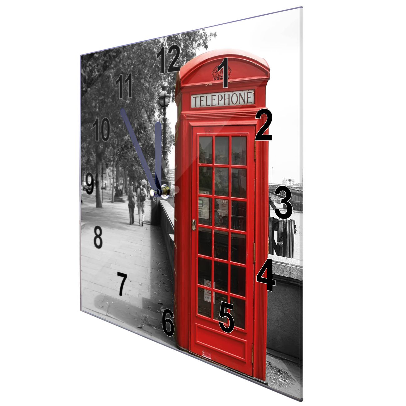 FUNKTION: Mit der banjado Wanduhr aus Glas mit dem Motiv London Red Telephone behalten Sie die Zeit immer im Blick, stilsicher und zuverlässig erkennen Sie auf einen Blick was die Stunde geschlagen hat. DESIGN: Die schlichte Form der Uhr sowie das individuelle Motiv passen sich hervorragend jedem Wohnraumkonzept an, egal ob klassisch, nostalgisch oder modern. DETAILS: Die Glasuhr ist quadratisch, 30 x 30cm groß und verfügt über ein geräuscharmes Uhrwerk mit schwarzen Zeigern. Das Motiv London Red Telephone befindet sich effektvoll hinter Glas. NUTZEN: Die banjado Glas Wanduhr verbindet Design und Funktion. Perfekt für Küche, Büro, Wohnzimmer oder Kinderzimmer, haben Sie die Zeit im Blick und eine schöne Wanddekoration. BANJADO: Wir fertigen alle Wanduhren auf Bestellung von Hand, erfüllen dabei auch gern Sonderwünsche. Wir wünschen viel Freude bei der Auswahl eines schönen Motivs. Herzlichst, banjado aus Sachsen