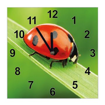 FUNKTION: Mit der banjado Wanduhr aus Glas mit dem Motiv Marienkäfer behalten Sie die Zeit immer im Blick, stilsicher und zuverlässig erkennen Sie auf einen Blick was die Stunde geschlagen hat. DESIGN: Die schlichte Form der Uhr sowie das individuelle Motiv passen sich hervorragend jedem Wohnraumkonzept an, egal ob klassisch, nostalgisch oder modern. DETAILS: Die Glasuhr ist quadratisch, 30 x 30cm groß und verfügt über ein geräuscharmes Uhrwerk mit schwarzen Zeigern. Das Motiv Marienkäfer befindet sich effektvoll hinter Glas. NUTZEN: Die banjado Glas Wanduhr verbindet Design und Funktion. Perfekt für Küche, Büro, Wohnzimmer oder Kinderzimmer, haben Sie die Zeit im Blick und eine schöne Wanddekoration. BANJADO: Wir fertigen alle Wanduhren auf Bestellung von Hand, erfüllen dabei auch gern Sonderwünsche. Wir wünschen viel Freude bei der Auswahl eines schönen Motivs. Herzlichst, banjado aus Sachsen
