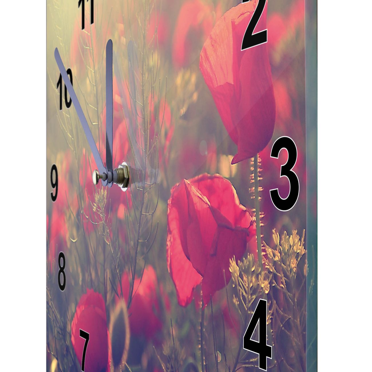 Glasuhr quadratisch Motiv Mohn