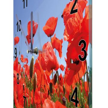 FUNKTION: Mit der banjado Wanduhr aus Glas mit dem Motiv Mohnblumen behalten Sie die Zeit immer im Blick, stilsicher und zuverlässig erkennen Sie auf einen Blick was die Stunde geschlagen hat. DESIGN: Die schlichte Form der Uhr sowie das individuelle Motiv passen sich hervorragend jedem Wohnraumkonzept an, egal ob klassisch, nostalgisch oder modern. DETAILS: Die Glasuhr ist quadratisch, 30 x 30cm groß und verfügt über ein geräuscharmes Uhrwerk mit schwarzen Zeigern. Das Motiv Mohnblumen befindet sich effektvoll hinter Glas. NUTZEN: Die banjado Glas Wanduhr verbindet Design und Funktion. Perfekt für Küche, Büro, Wohnzimmer oder Kinderzimmer, haben Sie die Zeit im Blick und eine schöne Wanddekoration. BANJADO: Wir fertigen alle Wanduhren auf Bestellung von Hand, erfüllen dabei auch gern Sonderwünsche. Wir wünschen viel Freude bei der Auswahl eines schönen Motivs. Herzlichst, banjado aus Sachsen