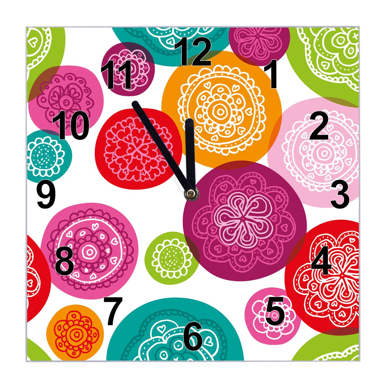 FUNKTION: Mit der banjado Wanduhr aus Glas mit dem Motiv Naive Blüten behalten Sie die Zeit immer im Blick, stilsicher und zuverlässig erkennen Sie auf einen Blick was die Stunde geschlagen hat. DESIGN: Die schlichte Form der Uhr sowie das individuelle Motiv passen sich hervorragend jedem Wohnraumkonzept an, egal ob klassisch, nostalgisch oder modern. DETAILS: Die Glasuhr ist quadratisch, 30 x 30cm groß und verfügt über ein geräuscharmes Uhrwerk mit schwarzen Zeigern. Das Motiv Naive Blüten befindet sich effektvoll hinter Glas. NUTZEN: Die banjado Glas Wanduhr verbindet Design und Funktion. Perfekt für Küche, Büro, Wohnzimmer oder Kinderzimmer, haben Sie die Zeit im Blick und eine schöne Wanddekoration. BANJADO: Wir fertigen alle Wanduhren auf Bestellung von Hand, erfüllen dabei auch gern Sonderwünsche. Wir wünschen viel Freude bei der Auswahl eines schönen Motivs. Herzlichst, banjado aus Sachsen