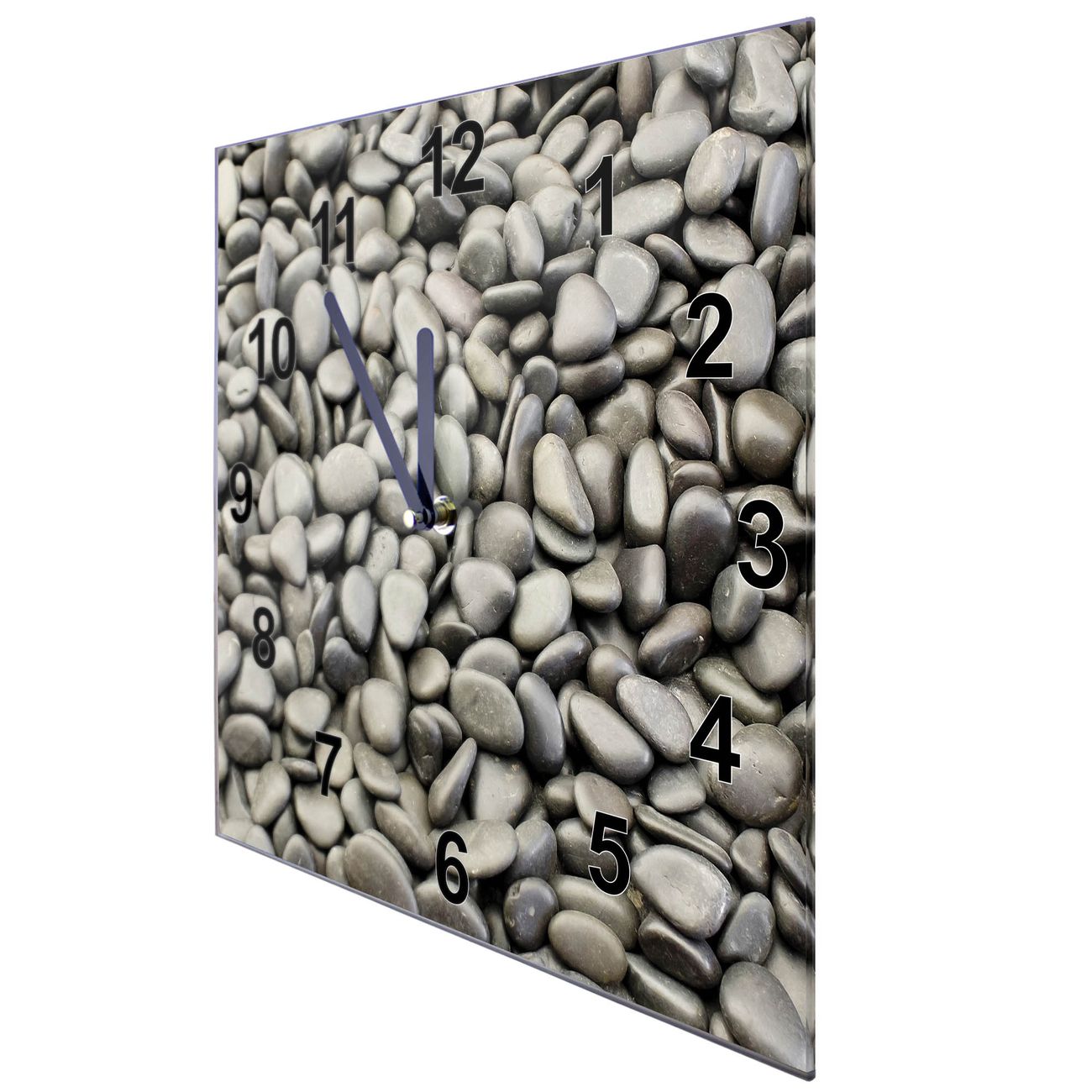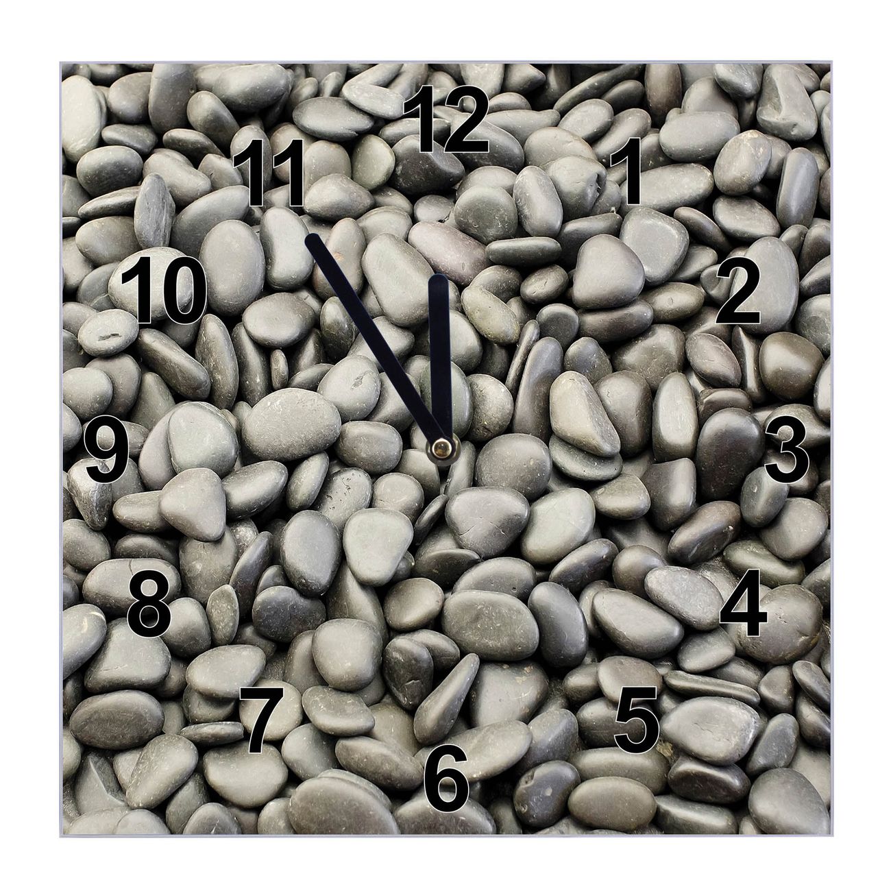 Glasuhr quadratisch Motiv Nasse Kiesel