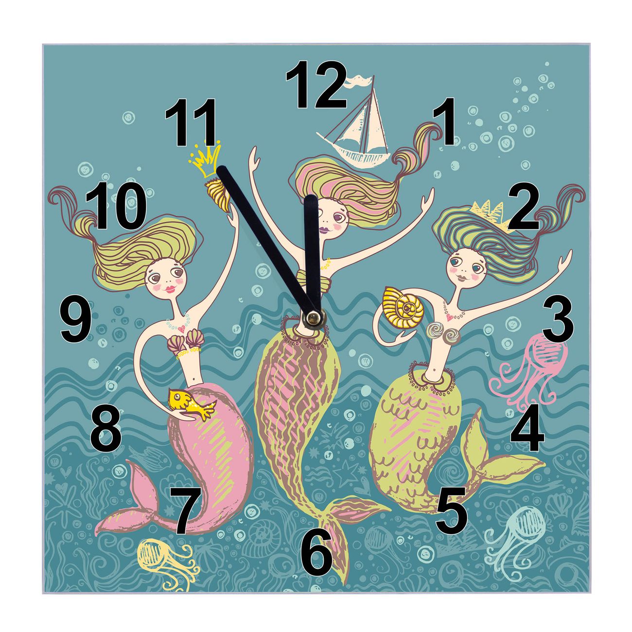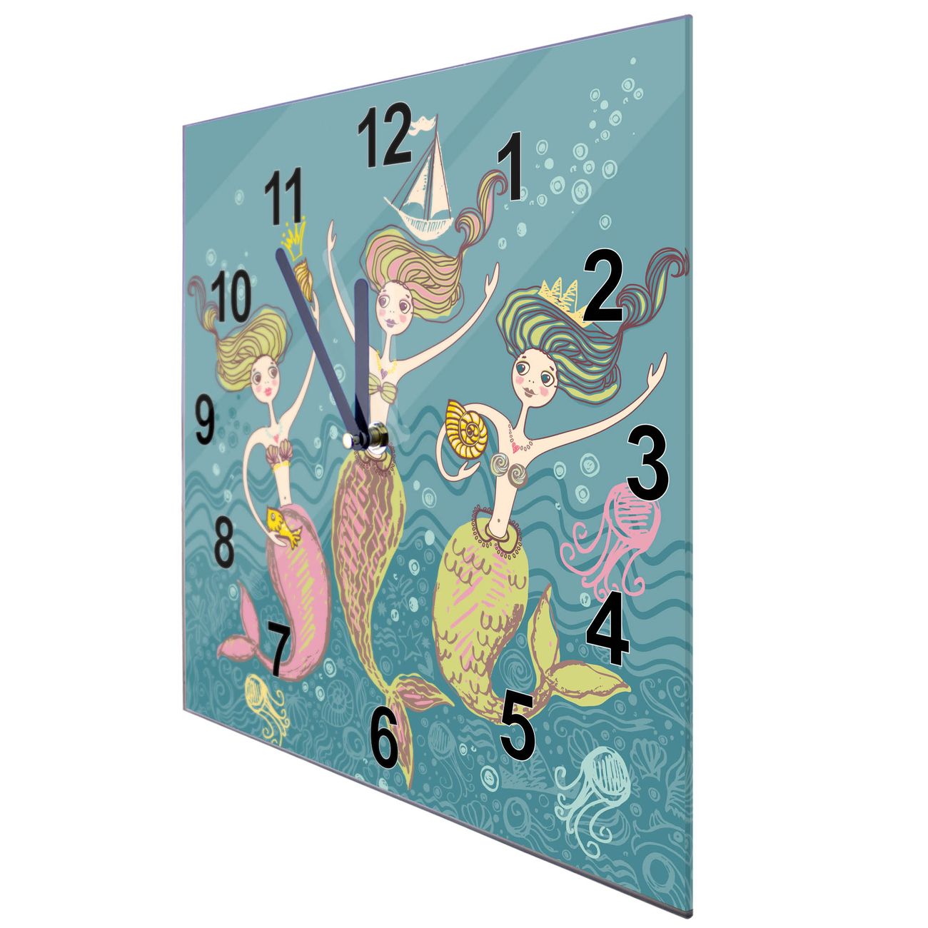 FUNKTION: Mit der banjado Wanduhr aus Glas mit dem Motiv Nixen behalten Sie die Zeit immer im Blick, stilsicher und zuverlässig erkennen Sie auf einen Blick was die Stunde geschlagen hat. DESIGN: Die schlichte Form der Uhr sowie das individuelle Motiv passen sich hervorragend jedem Wohnraumkonzept an, egal ob klassisch, nostalgisch oder modern. DETAILS: Die Glasuhr ist quadratisch, 30 x 30cm groß und verfügt über ein geräuscharmes Uhrwerk mit schwarzen Zeigern. Das Motiv Nixen befindet sich effektvoll hinter Glas. NUTZEN: Die banjado Glas Wanduhr verbindet Design und Funktion. Perfekt für Küche, Büro, Wohnzimmer oder Kinderzimmer, haben Sie die Zeit im Blick und eine schöne Wanddekoration. BANJADO: Wir fertigen alle Wanduhren auf Bestellung von Hand, erfüllen dabei auch gern Sonderwünsche. Wir wünschen viel Freude bei der Auswahl eines schönen Motivs. Herzlichst, banjado aus Sachsen