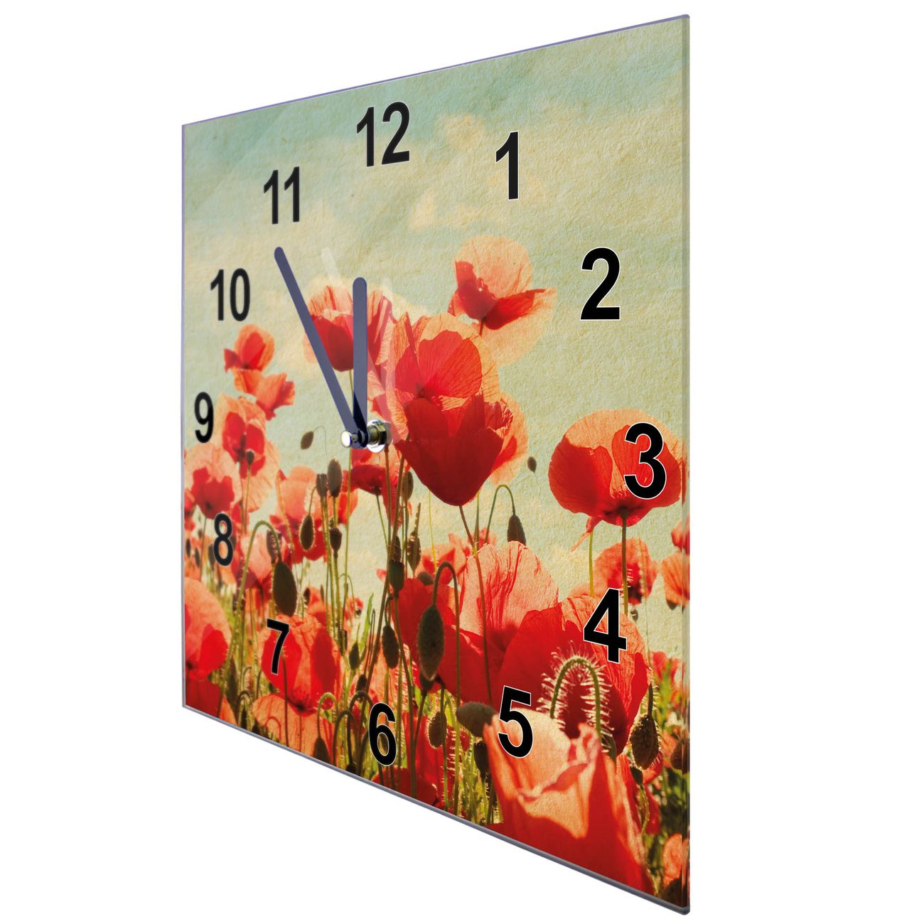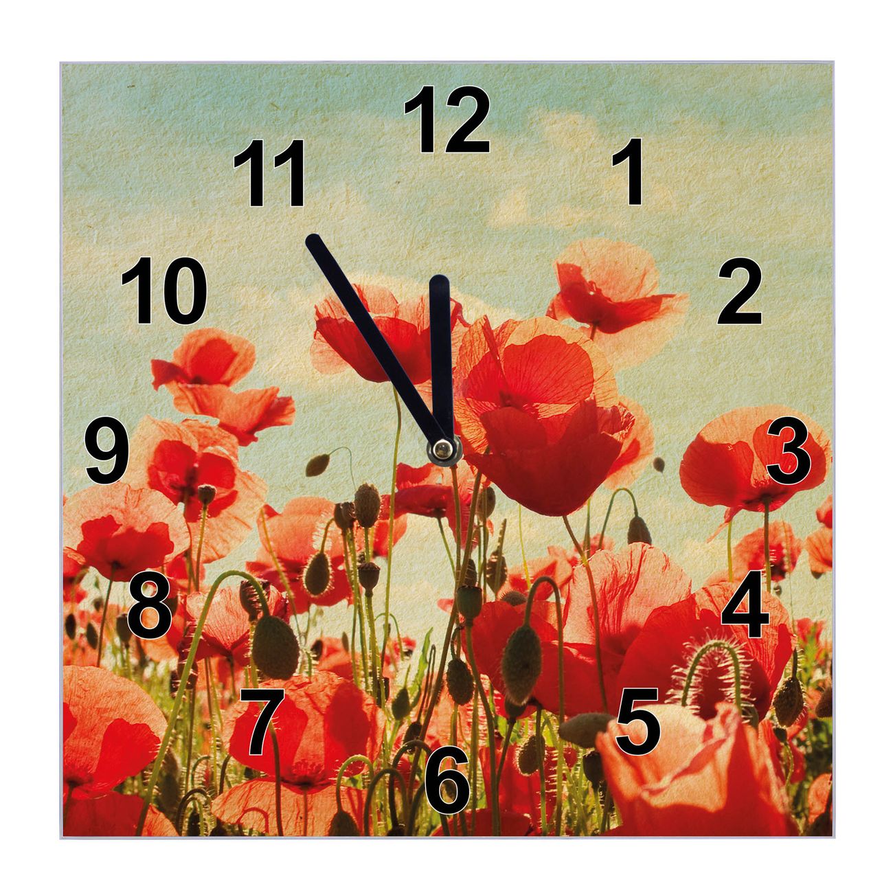 FUNKTION: Mit der banjado Wanduhr aus Glas mit dem Motiv Oktobermohn behalten Sie die Zeit immer im Blick, stilsicher und zuverlässig erkennen Sie auf einen Blick was die Stunde geschlagen hat. DESIGN: Die schlichte Form der Uhr sowie das individuelle Motiv passen sich hervorragend jedem Wohnraumkonzept an, egal ob klassisch, nostalgisch oder modern. DETAILS: Die Glasuhr ist quadratisch, 30 x 30cm groß und verfügt über ein geräuscharmes Uhrwerk mit schwarzen Zeigern. Das Motiv Oktobermohn befindet sich effektvoll hinter Glas. NUTZEN: Die banjado Glas Wanduhr verbindet Design und Funktion. Perfekt für Küche, Büro, Wohnzimmer oder Kinderzimmer, haben Sie die Zeit im Blick und eine schöne Wanddekoration. BANJADO: Wir fertigen alle Wanduhren auf Bestellung von Hand, erfüllen dabei auch gern Sonderwünsche. Wir wünschen viel Freude bei der Auswahl eines schönen Motivs. Herzlichst, banjado aus Sachsen