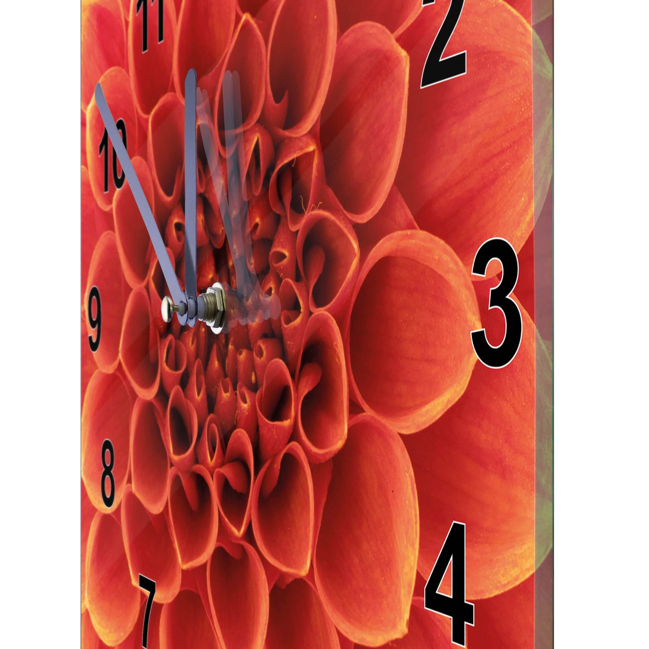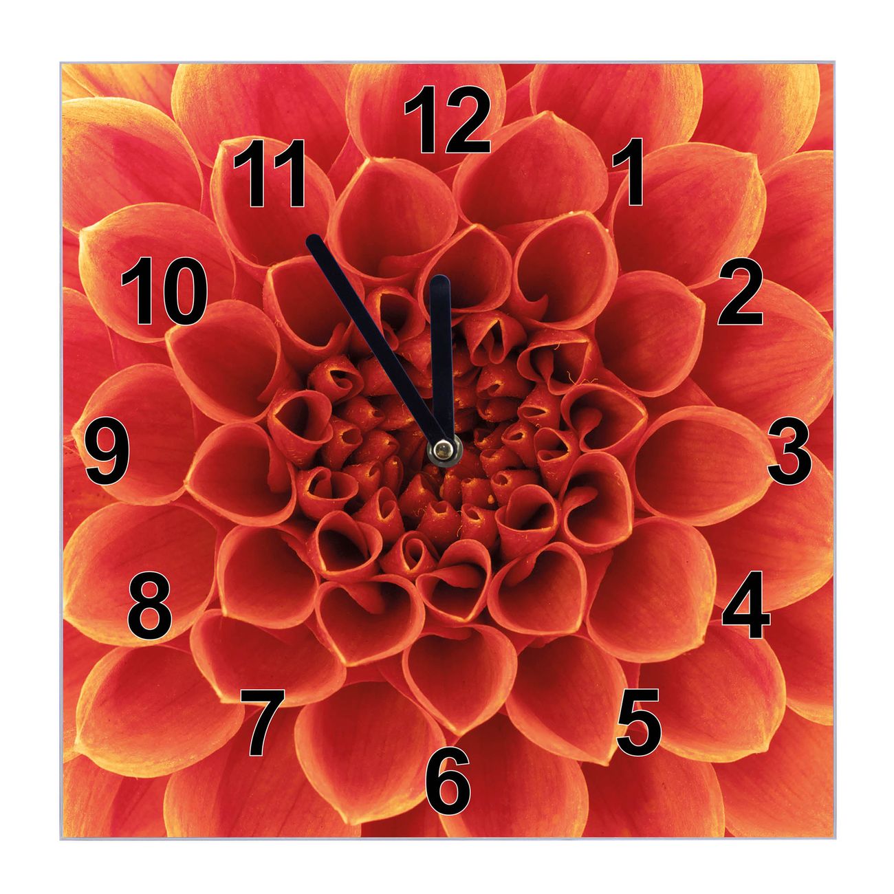 Glasuhr quadratisch Motiv Orange Chrysantheme