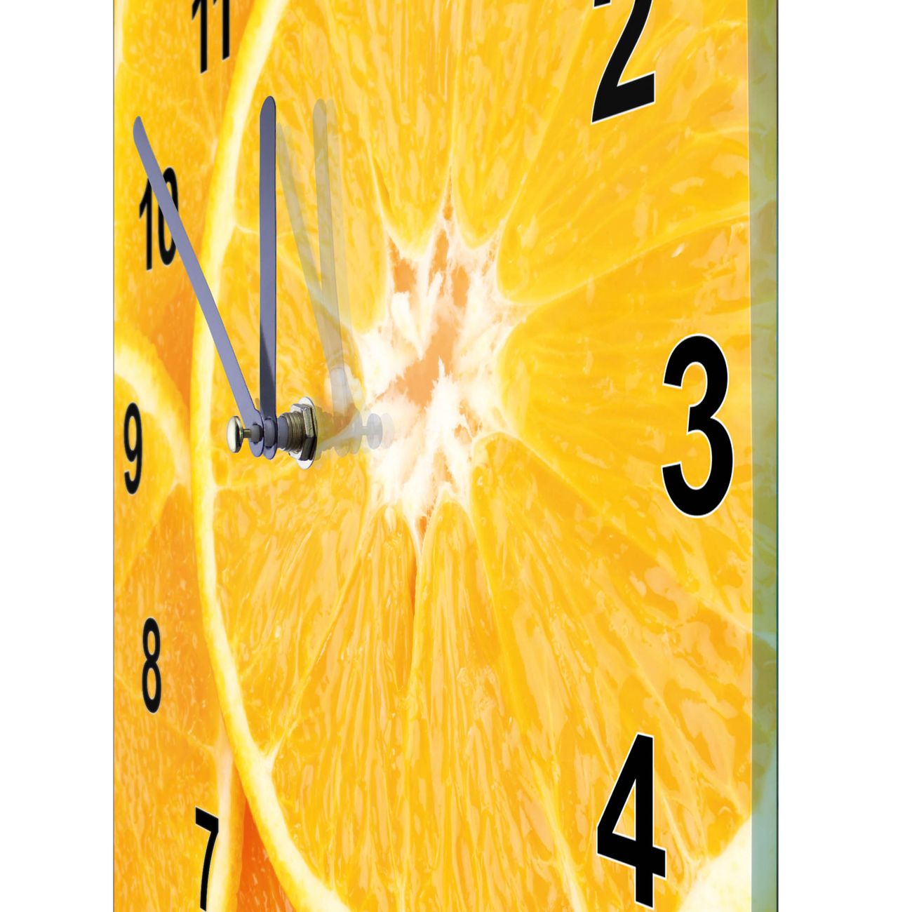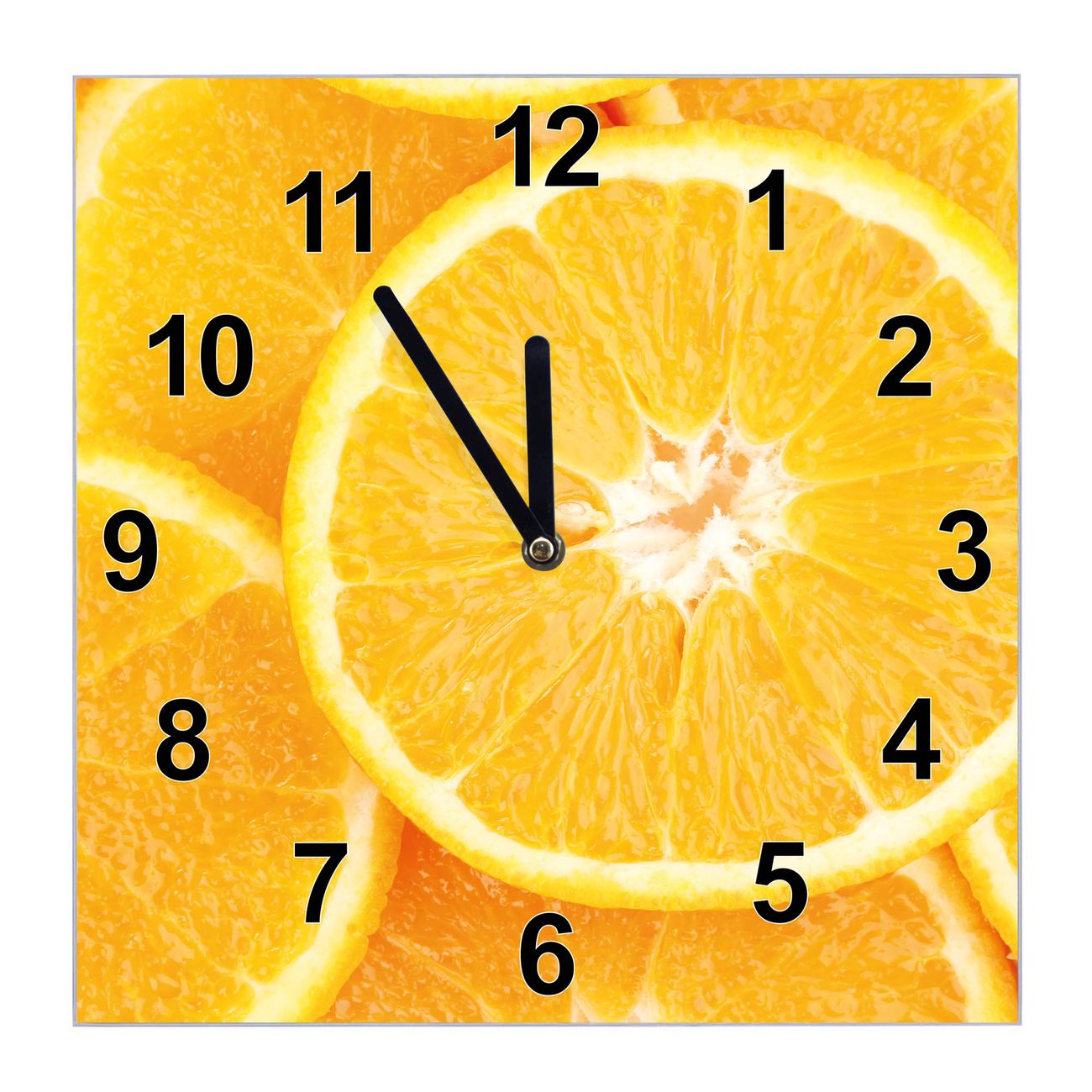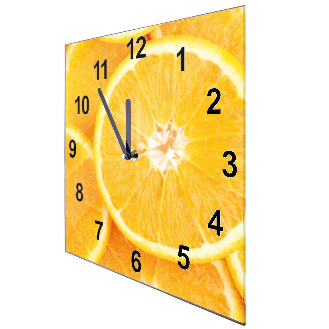 FUNKTION: Mit der banjado Wanduhr aus Glas mit dem Motiv Orangenscheiben behalten Sie die Zeit immer im Blick, stilsicher und zuverlässig erkennen Sie auf einen Blick was die Stunde geschlagen hat. DESIGN: Die schlichte Form der Uhr sowie das individuelle Motiv passen sich hervorragend jedem Wohnraumkonzept an, egal ob klassisch, nostalgisch oder modern. DETAILS: Die Glasuhr ist quadratisch, 30 x 30cm groß und verfügt über ein geräuscharmes Uhrwerk mit schwarzen Zeigern. Das Motiv Orangenscheiben befindet sich effektvoll hinter Glas. NUTZEN: Die banjado Glas Wanduhr verbindet Design und Funktion. Perfekt für Küche, Büro, Wohnzimmer oder Kinderzimmer, haben Sie die Zeit im Blick und eine schöne Wanddekoration. BANJADO: Wir fertigen alle Wanduhren auf Bestellung von Hand, erfüllen dabei auch gern Sonderwünsche. Wir wünschen viel Freude bei der Auswahl eines schönen Motivs. Herzlichst, banjado aus Sachsen
