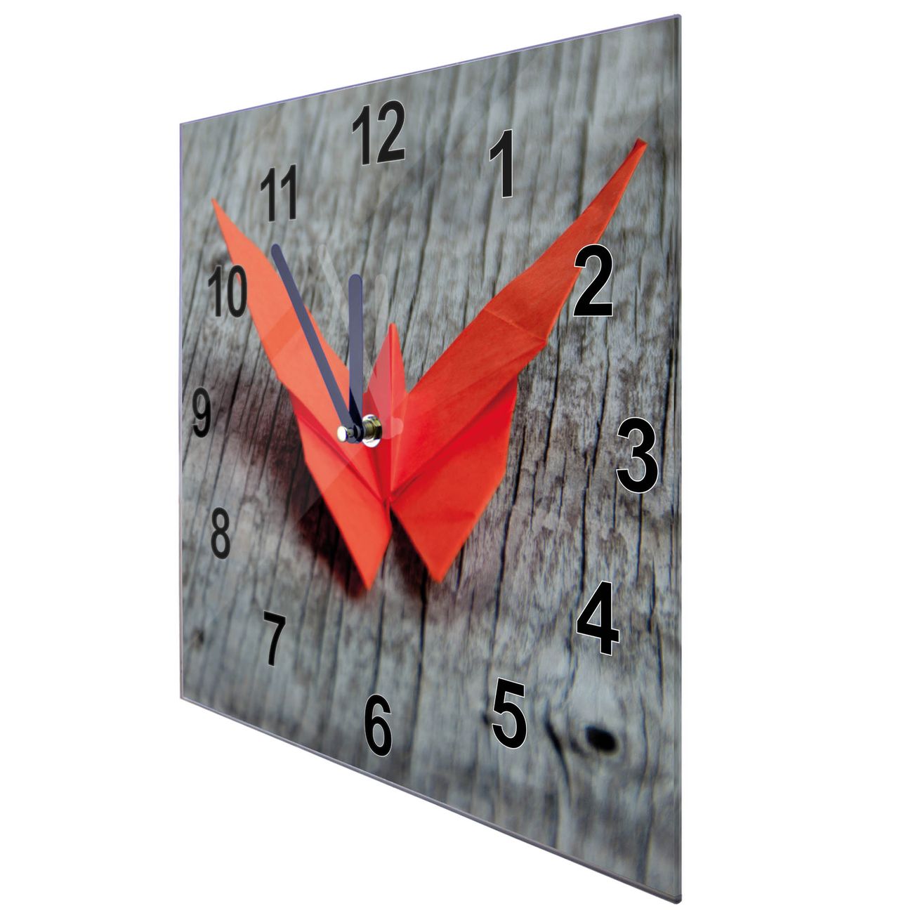 Glasuhr quadratisch Motiv Origami Schmetterling