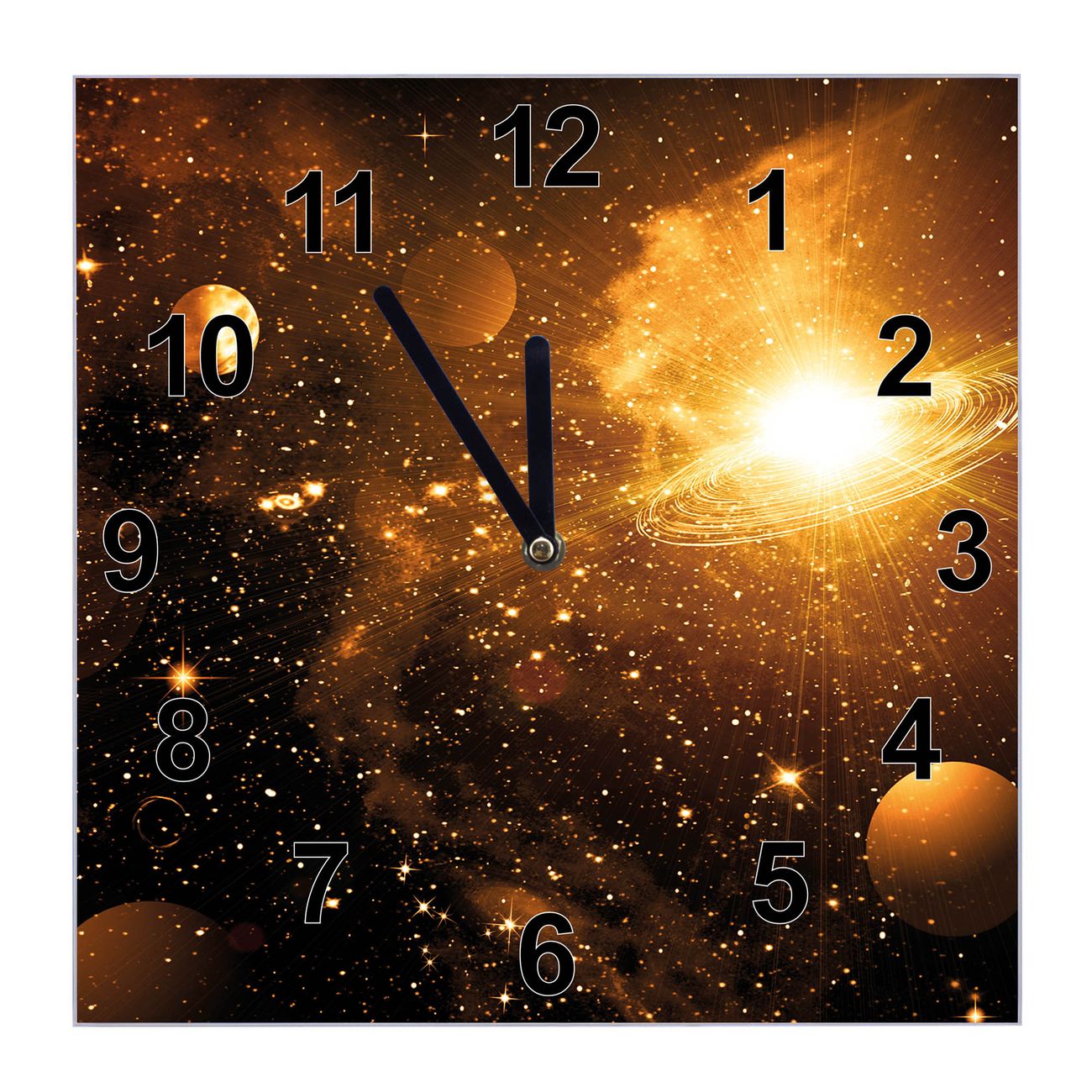 FUNKTION: Mit der banjado Wanduhr aus Glas mit dem Motiv Outer Space behalten Sie die Zeit immer im Blick, stilsicher und zuverlässig erkennen Sie auf einen Blick was die Stunde geschlagen hat. DESIGN: Die schlichte Form der Uhr sowie das individuelle Motiv passen sich hervorragend jedem Wohnraumkonzept an, egal ob klassisch, nostalgisch oder modern. DETAILS: Die Glasuhr ist quadratisch, 30 x 30cm groß und verfügt über ein geräuscharmes Uhrwerk mit schwarzen Zeigern. Das Motiv Outer Space befindet sich effektvoll hinter Glas. NUTZEN: Die banjado Glas Wanduhr verbindet Design und Funktion. Perfekt für Küche, Büro, Wohnzimmer oder Kinderzimmer, haben Sie die Zeit im Blick und eine schöne Wanddekoration. BANJADO: Wir fertigen alle Wanduhren auf Bestellung von Hand, erfüllen dabei auch gern Sonderwünsche. Wir wünschen viel Freude bei der Auswahl eines schönen Motivs. Herzlichst, banjado aus Sachsen