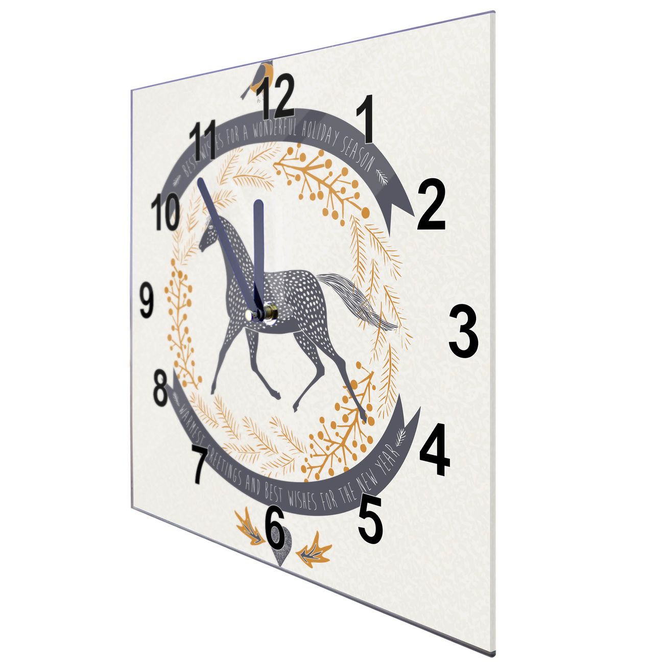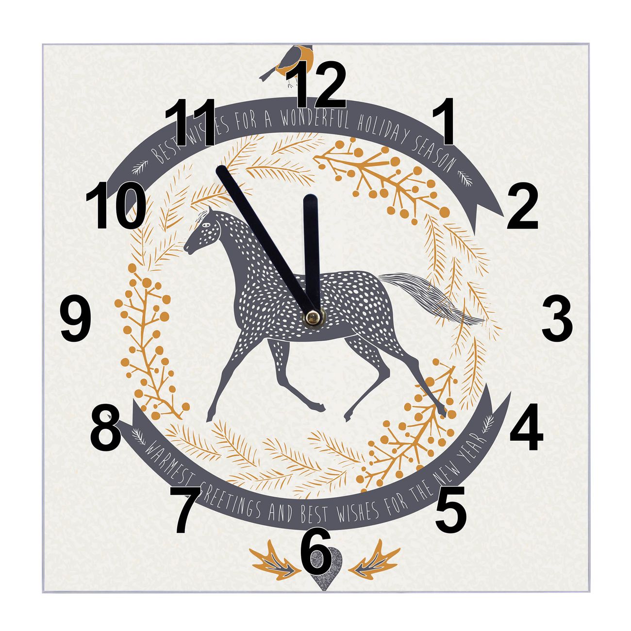 Glasuhr quadratisch Motiv Pferd und Vogel
