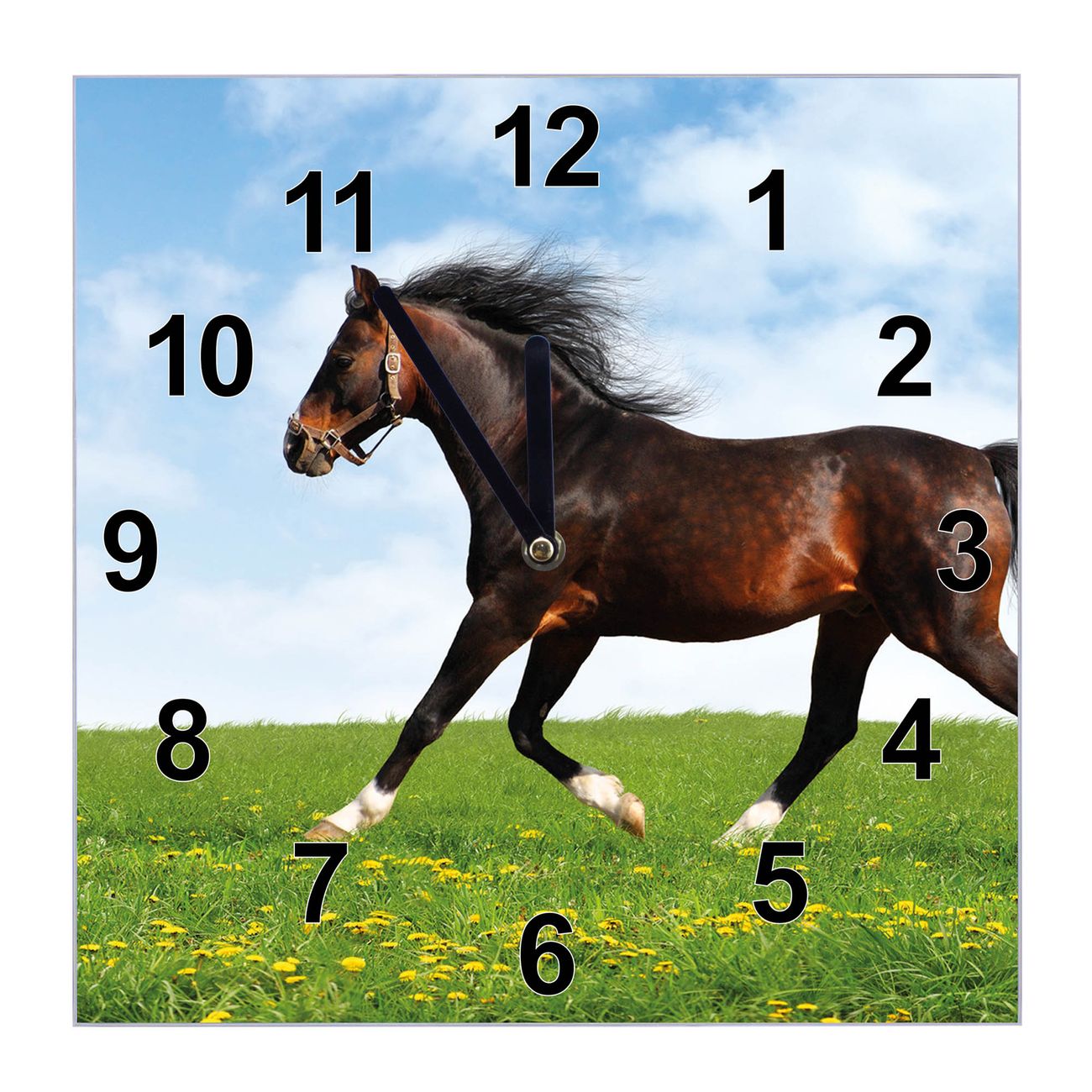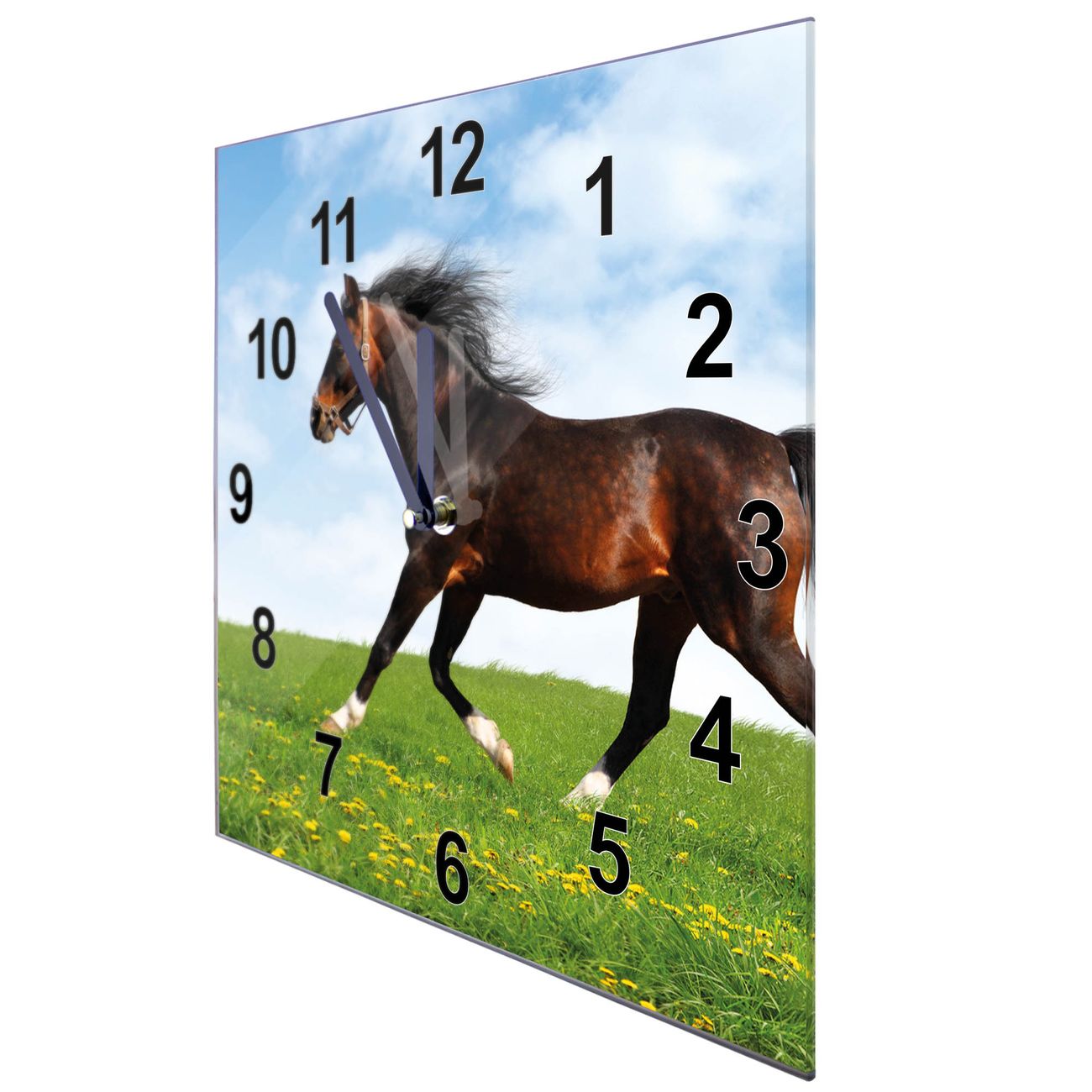 Glasuhr quadratisch Motiv Pferd