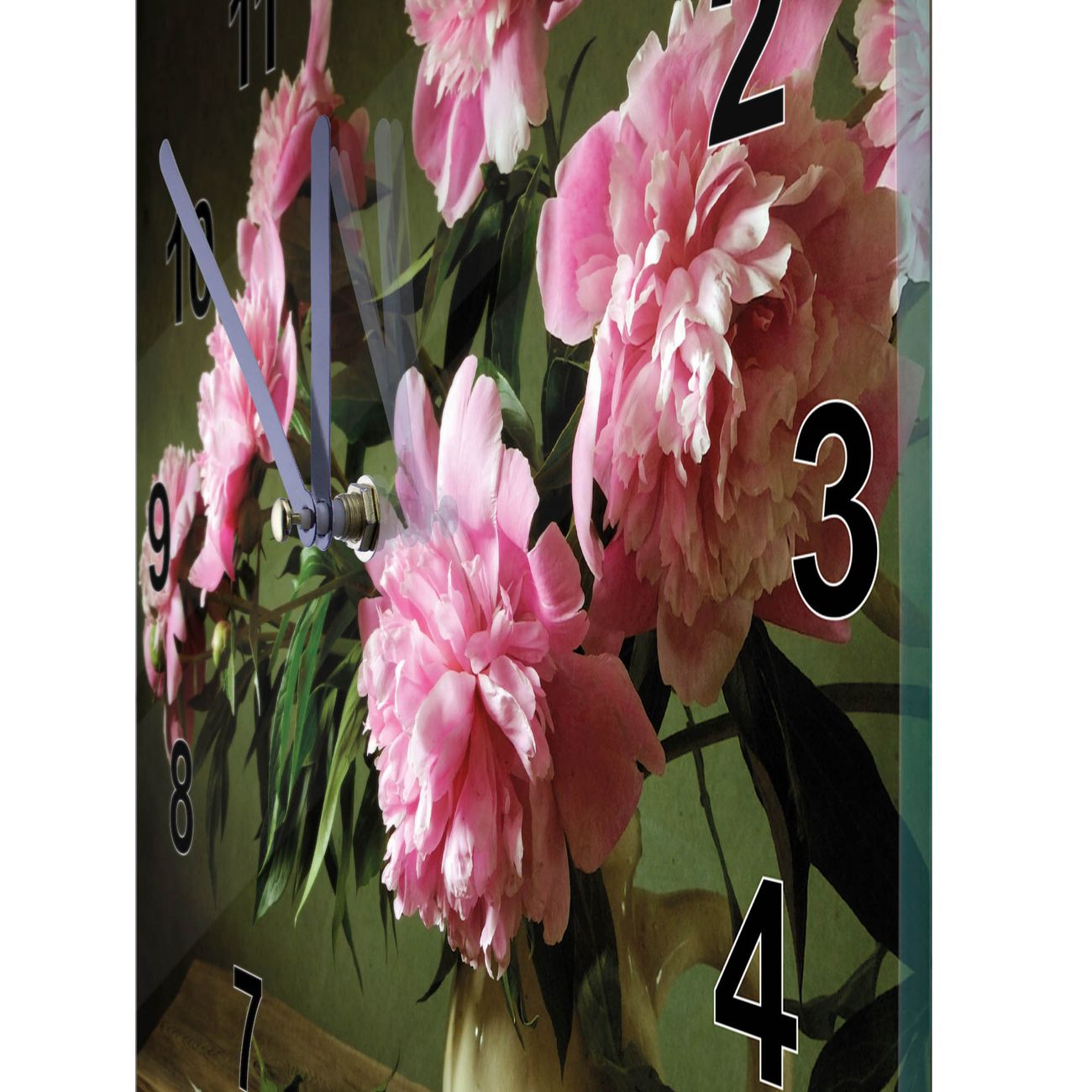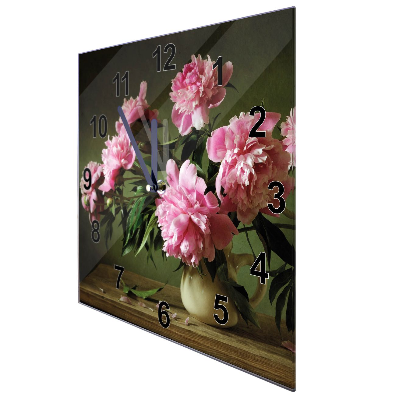 Glasuhr quadratisch Motiv Pinke Pfingstrosen
