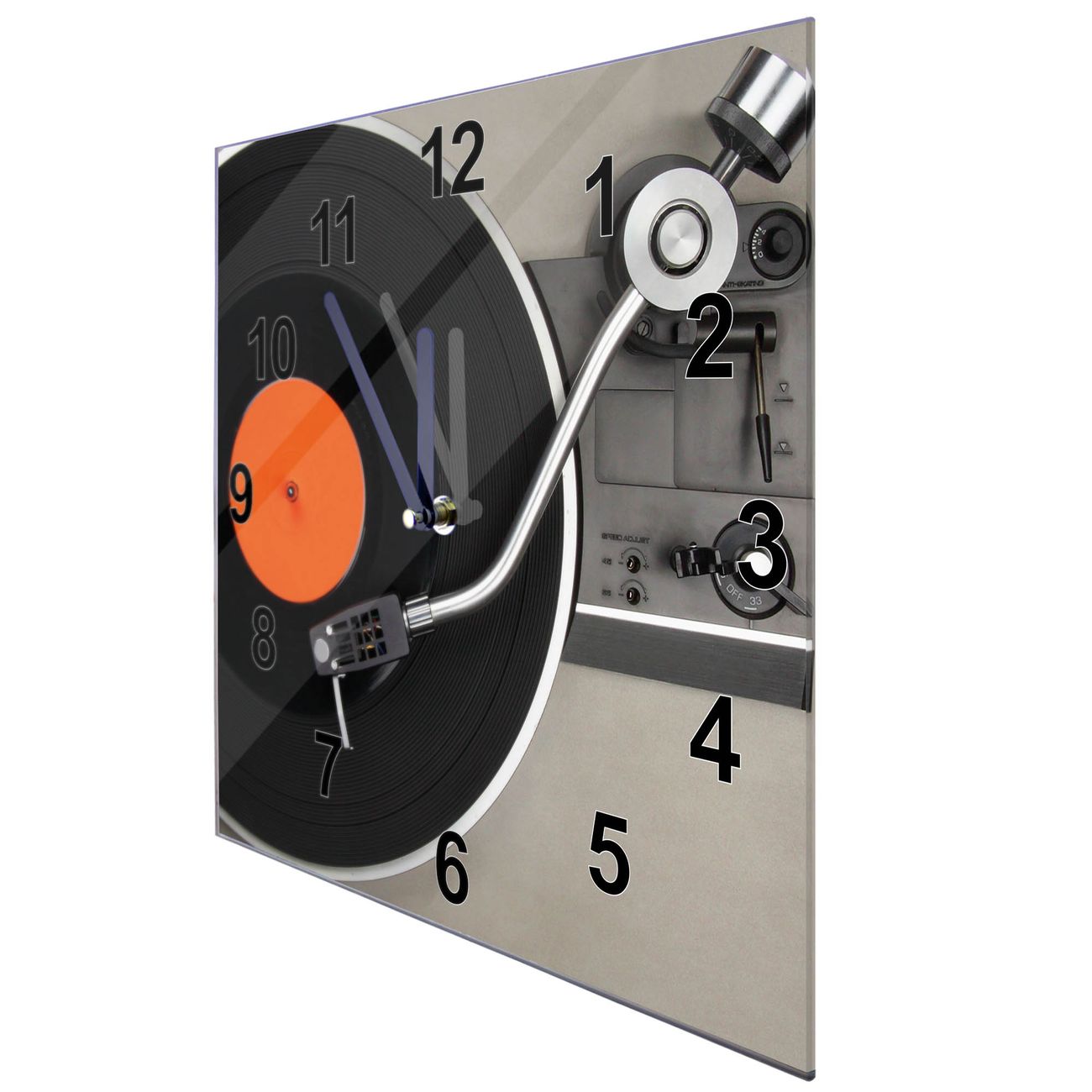 FUNKTION: Mit der banjado Wanduhr aus Glas mit dem Motiv Plattenspieler behalten Sie die Zeit immer im Blick, stilsicher und zuverlässig erkennen Sie auf einen Blick was die Stunde geschlagen hat. DESIGN: Die schlichte Form der Uhr sowie das individuelle Motiv passen sich hervorragend jedem Wohnraumkonzept an, egal ob klassisch, nostalgisch oder modern. DETAILS: Die Glasuhr ist quadratisch, 30 x 30cm groß und verfügt über ein geräuscharmes Uhrwerk mit schwarzen Zeigern. Das Motiv Plattenspieler befindet sich effektvoll hinter Glas. NUTZEN: Die banjado Glas Wanduhr verbindet Design und Funktion. Perfekt für Küche, Büro, Wohnzimmer oder Kinderzimmer, haben Sie die Zeit im Blick und eine schöne Wanddekoration. BANJADO: Wir fertigen alle Wanduhren auf Bestellung von Hand, erfüllen dabei auch gern Sonderwünsche. Wir wünschen viel Freude bei der Auswahl eines schönen Motivs. Herzlichst, banjado aus Sachsen