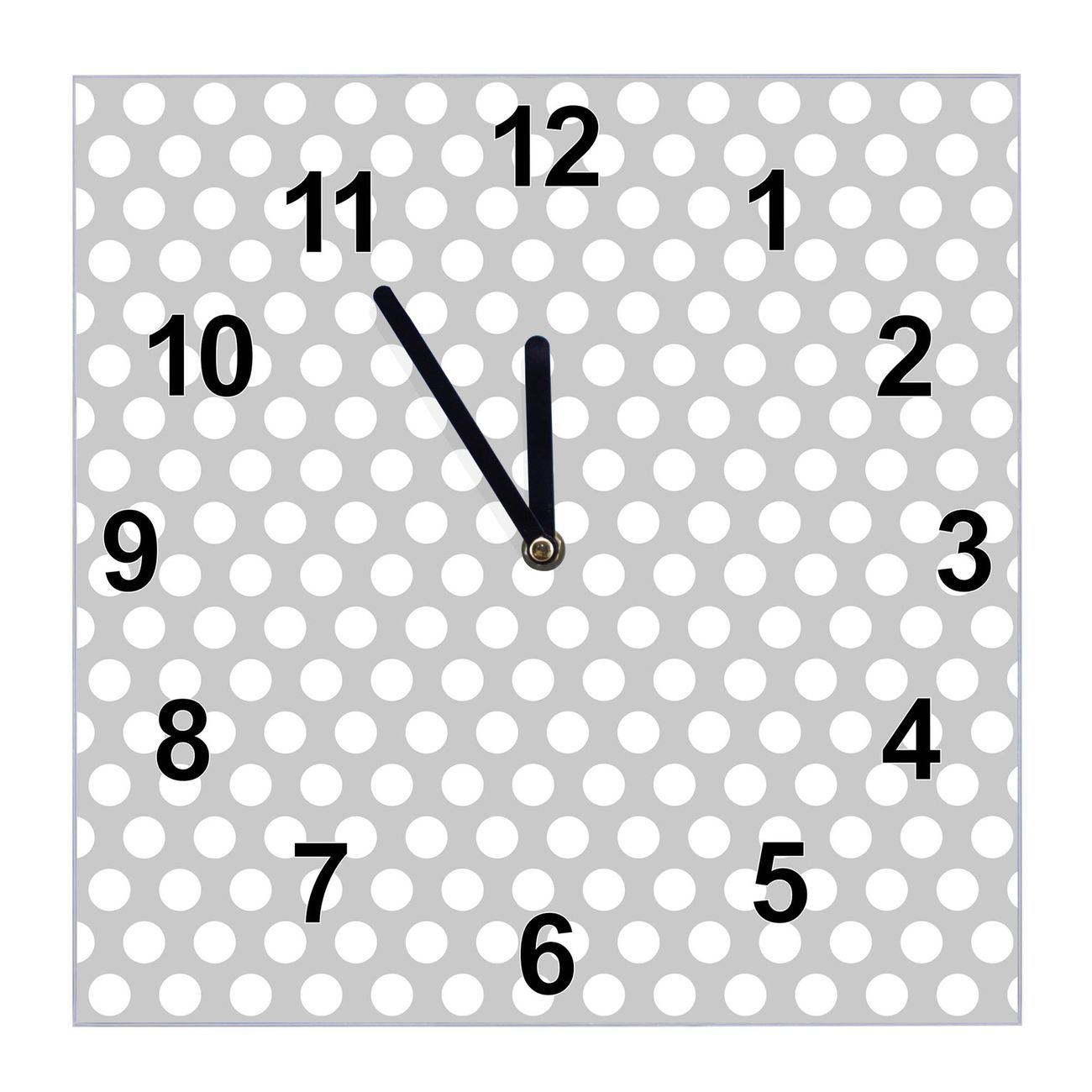 FUNKTION: Mit der banjado Wanduhr aus Glas mit dem Motiv Punkte Grau behalten Sie die Zeit immer im Blick, stilsicher und zuverlässig erkennen Sie auf einen Blick was die Stunde geschlagen hat. DESIGN: Die schlichte Form der Uhr sowie das individuelle Motiv passen sich hervorragend jedem Wohnraumkonzept an, egal ob klassisch, nostalgisch oder modern. DETAILS: Die Glasuhr ist quadratisch, 30 x 30cm groß und verfügt über ein geräuscharmes Uhrwerk mit schwarzen Zeigern. Das Motiv Punkte Grau befindet sich effektvoll hinter Glas. NUTZEN: Die banjado Glas Wanduhr verbindet Design und Funktion. Perfekt für Küche, Büro, Wohnzimmer oder Kinderzimmer, haben Sie die Zeit im Blick und eine schöne Wanddekoration. BANJADO: Wir fertigen alle Wanduhren auf Bestellung von Hand, erfüllen dabei auch gern Sonderwünsche. Wir wünschen viel Freude bei der Auswahl eines schönen Motivs. Herzlichst, banjado aus Sachsen
