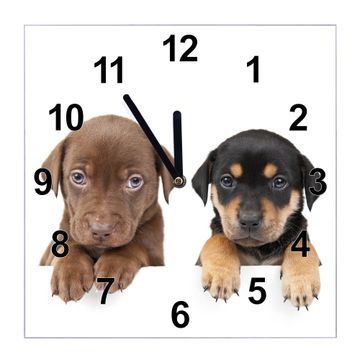 Glasuhr quadratisch Motiv Puppies