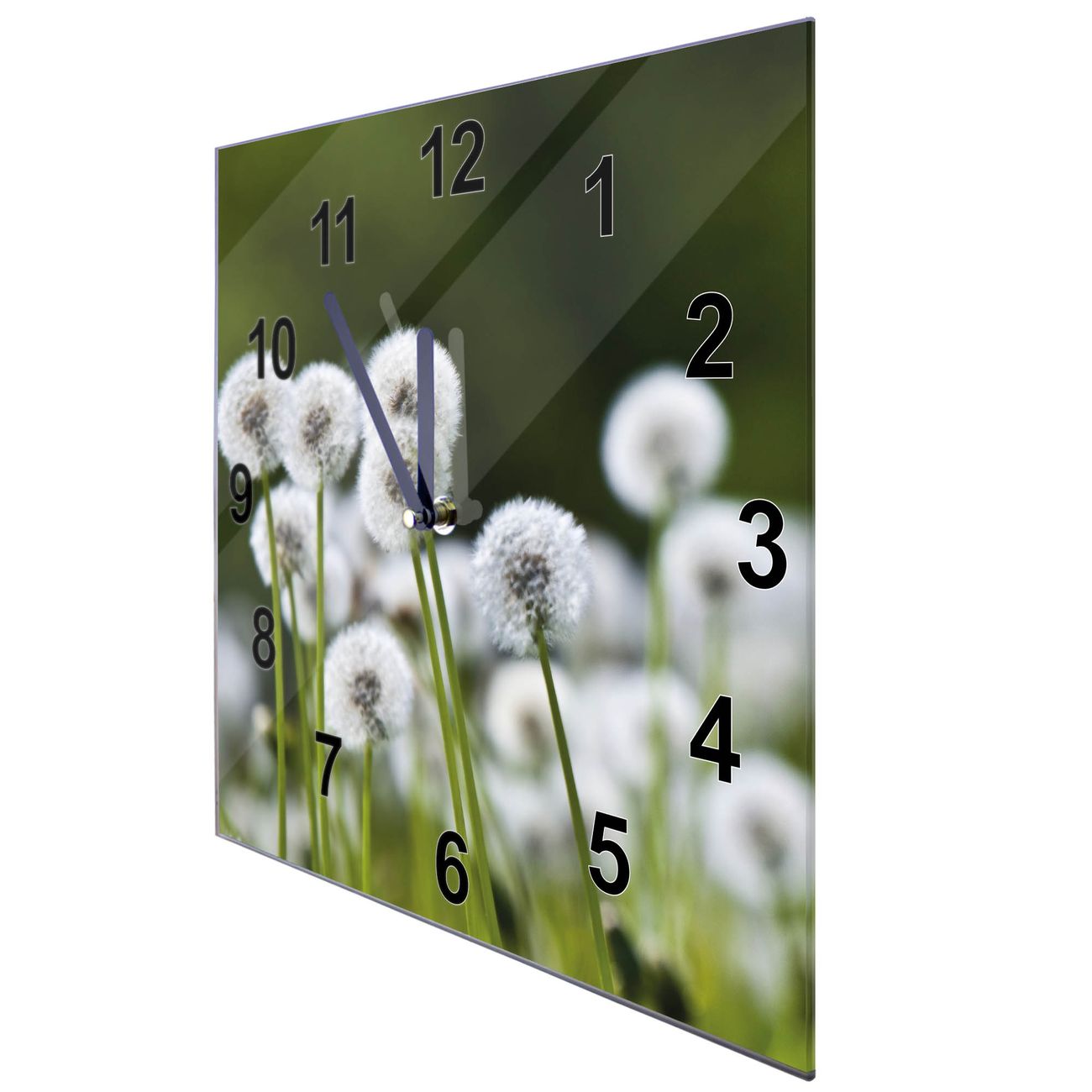 Glasuhr quadratisch Motiv Pusteblumenwiese