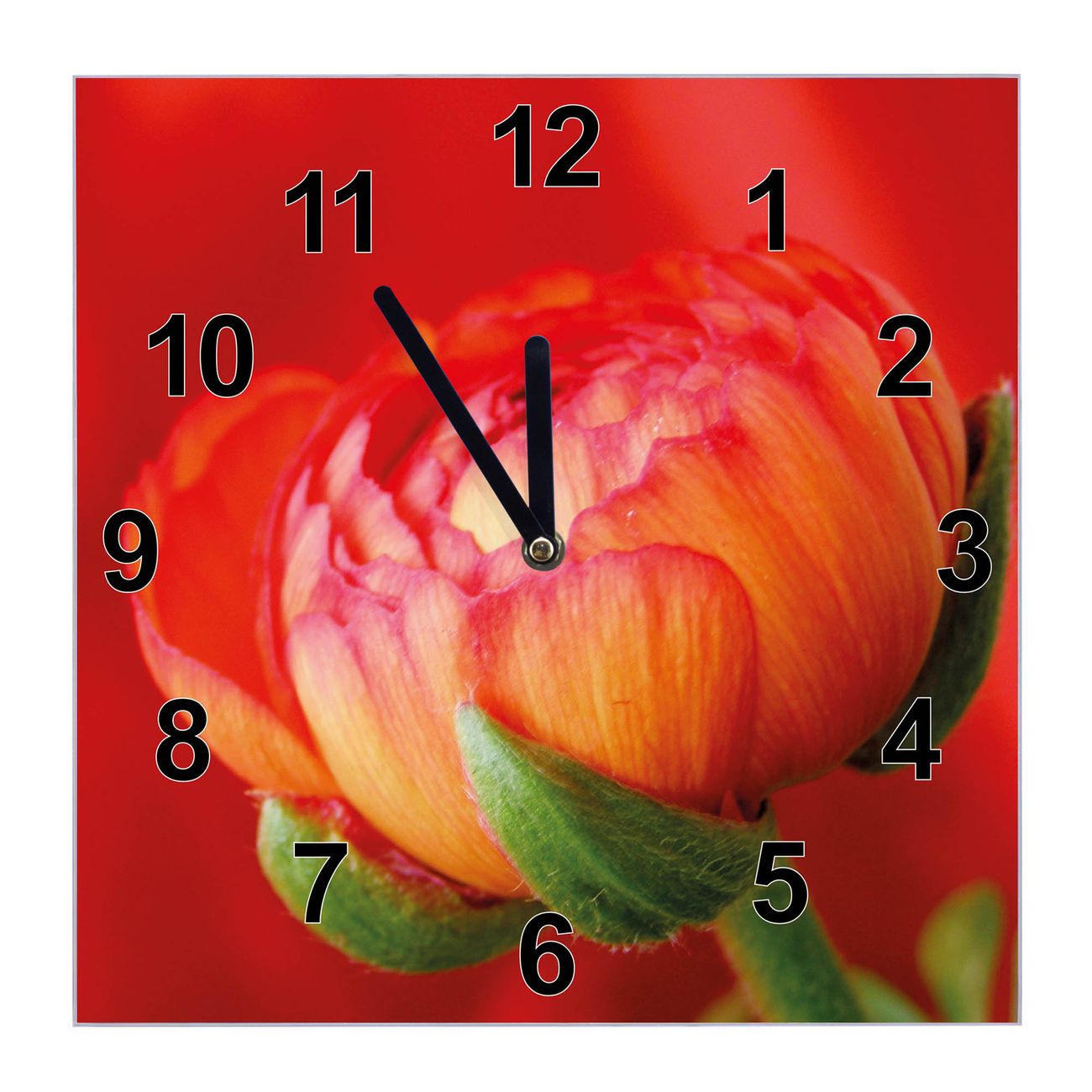 FUNKTION: Mit der banjado Wanduhr aus Glas mit dem Motiv Ranunkel behalten Sie die Zeit immer im Blick, stilsicher und zuverlässig erkennen Sie auf einen Blick was die Stunde geschlagen hat. DESIGN: Die schlichte Form der Uhr sowie das individuelle Motiv passen sich hervorragend jedem Wohnraumkonzept an, egal ob klassisch, nostalgisch oder modern. DETAILS: Die Glasuhr ist quadratisch, 30 x 30cm groß und verfügt über ein geräuscharmes Uhrwerk mit schwarzen Zeigern. Das Motiv Ranunkel befindet sich effektvoll hinter Glas. NUTZEN: Die banjado Glas Wanduhr verbindet Design und Funktion. Perfekt für Küche, Büro, Wohnzimmer oder Kinderzimmer, haben Sie die Zeit im Blick und eine schöne Wanddekoration. BANJADO: Wir fertigen alle Wanduhren auf Bestellung von Hand, erfüllen dabei auch gern Sonderwünsche. Wir wünschen viel Freude bei der Auswahl eines schönen Motivs. Herzlichst, banjado aus Sachsen