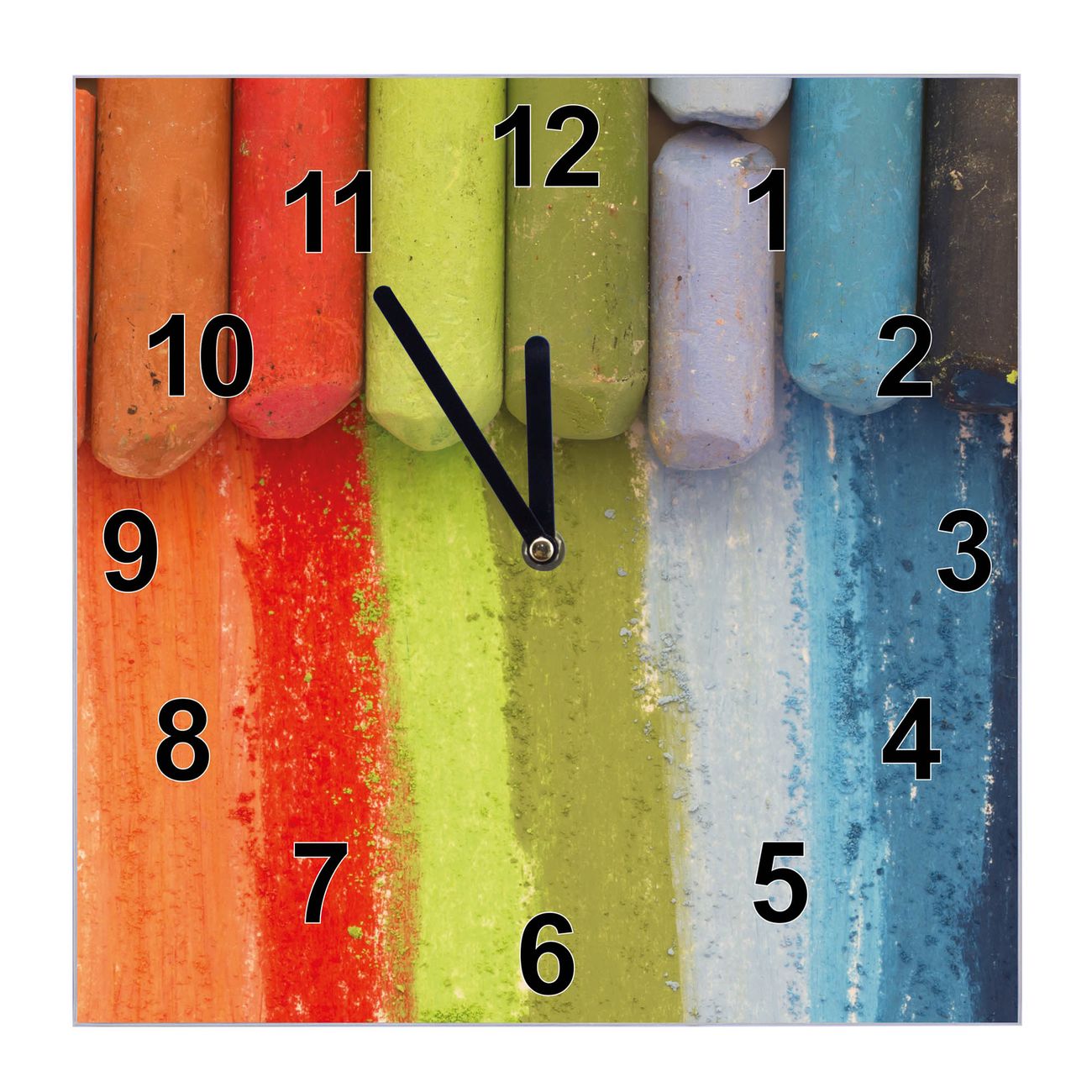 Glasuhr quadratisch Motiv Regenbogenkreide