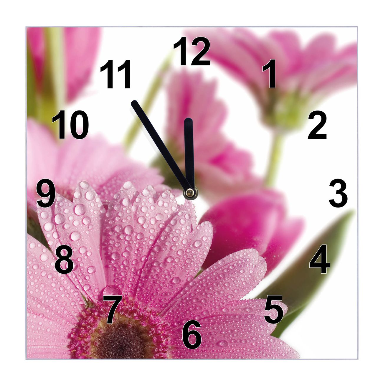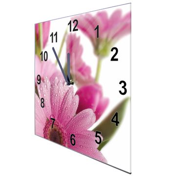 Glasuhr quadratisch Motiv Rosa Gerbera