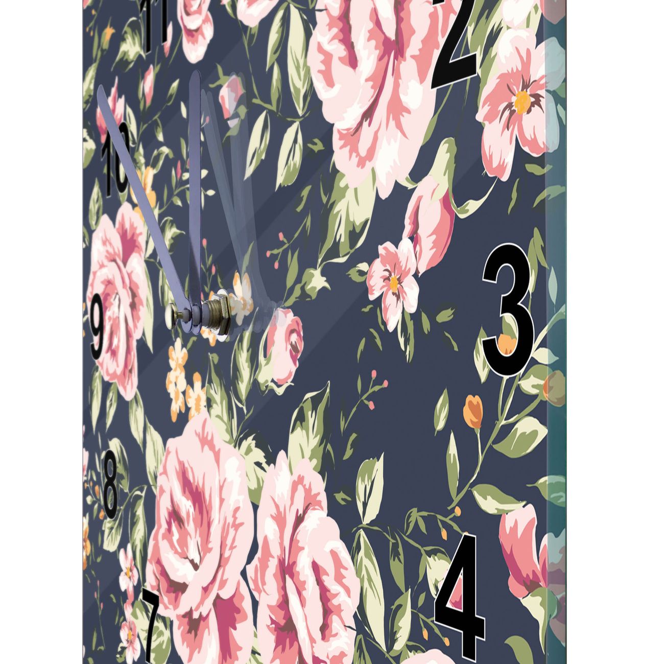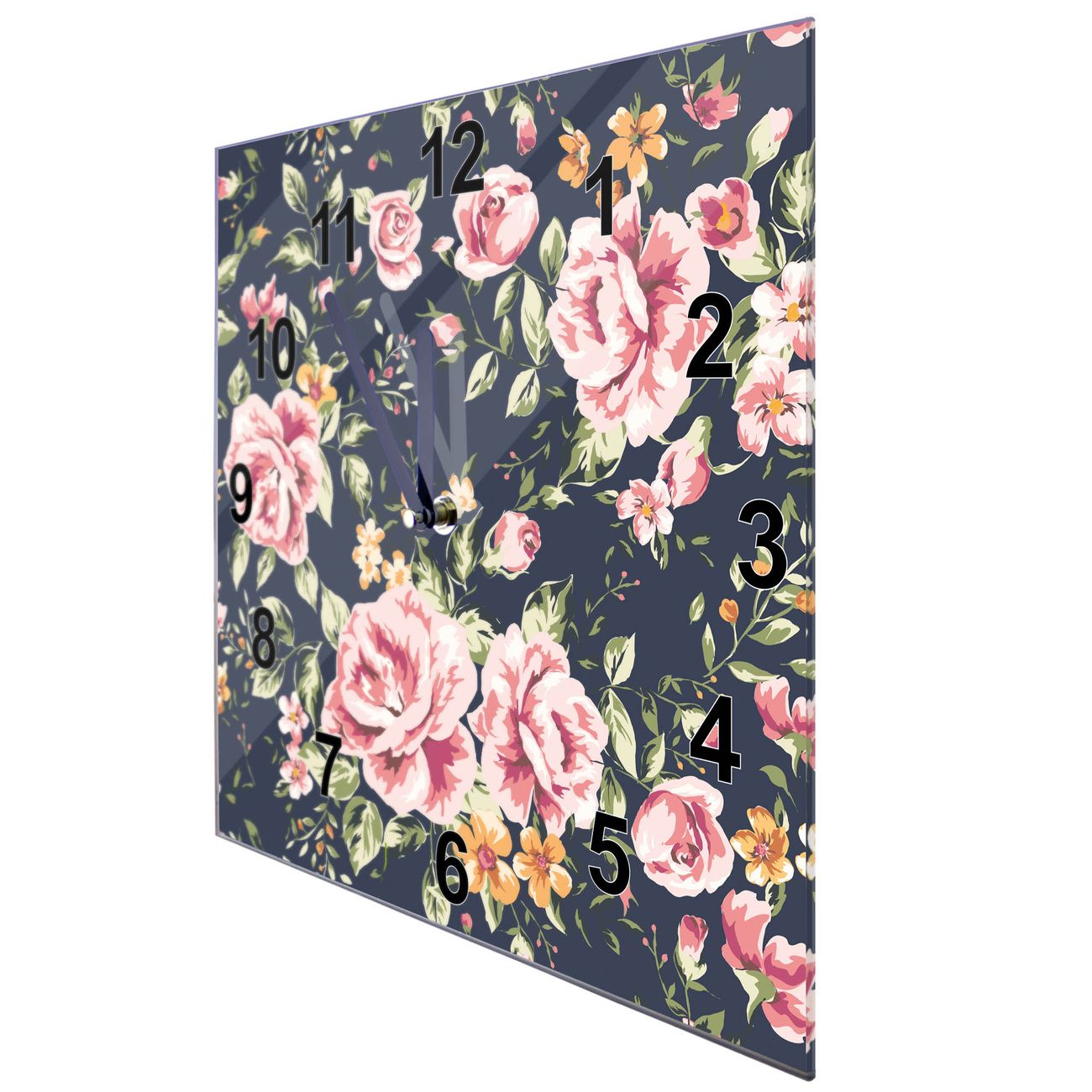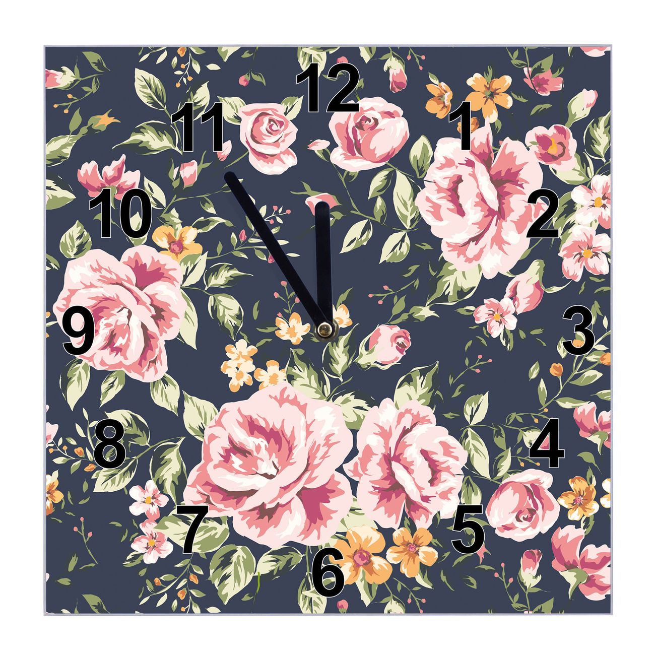 Glasuhr quadratisch Motiv Rosen Auf Anthrazit