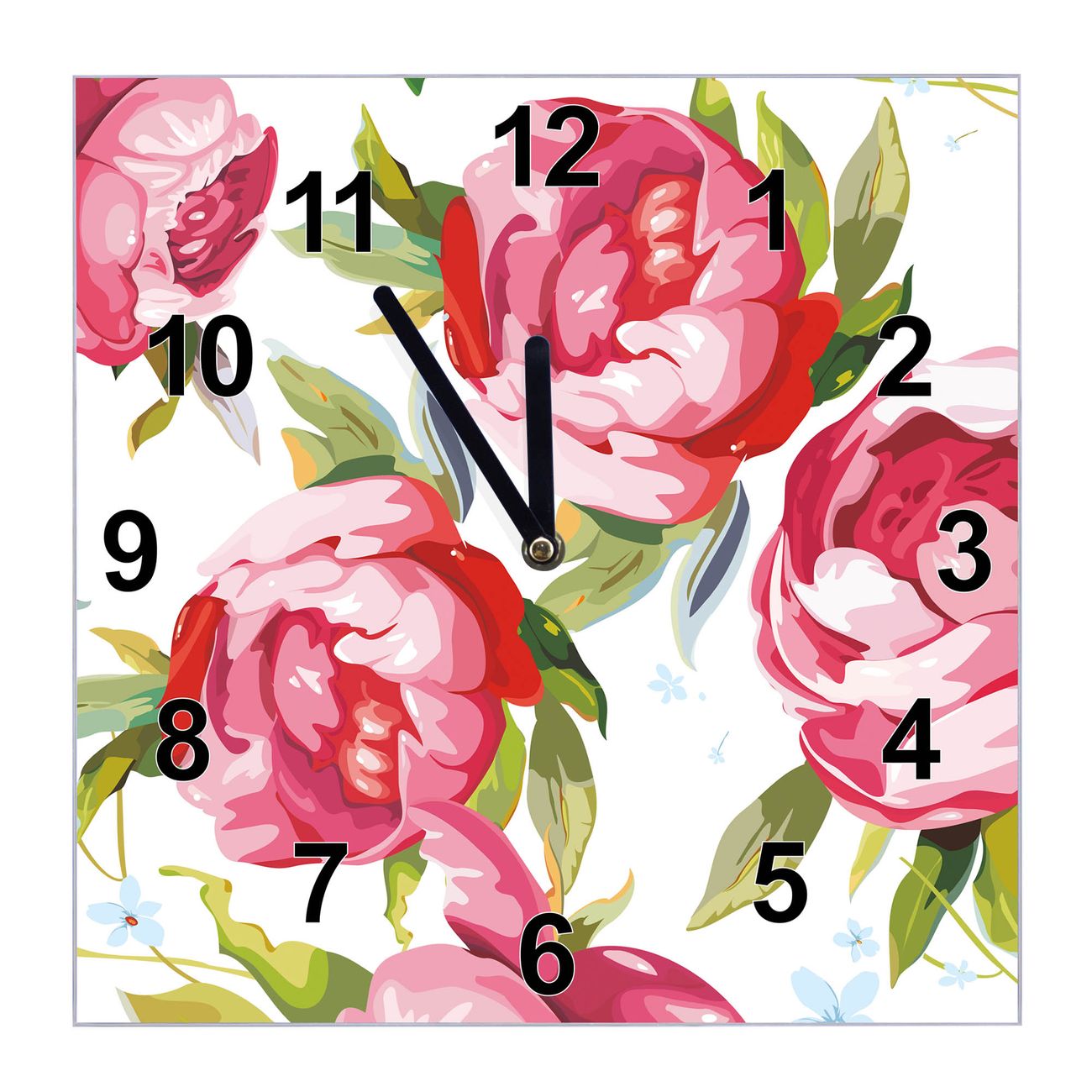 Glasuhr quadratisch Motiv Rosen Rustikal