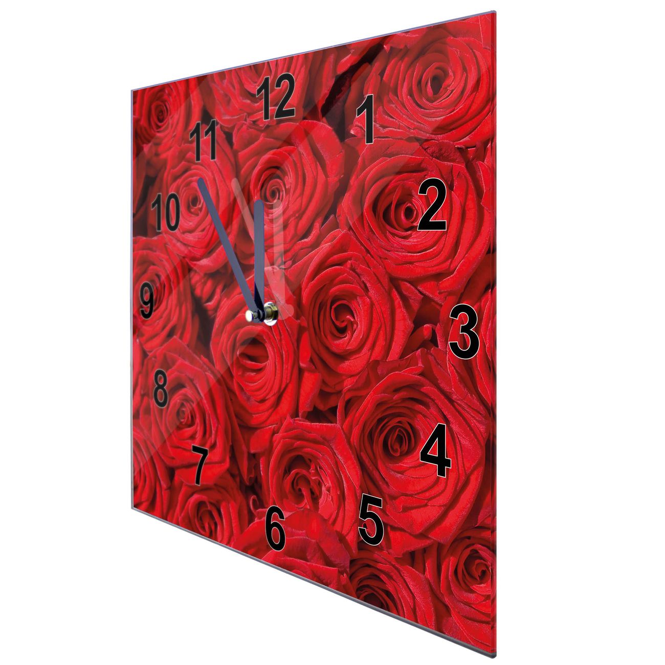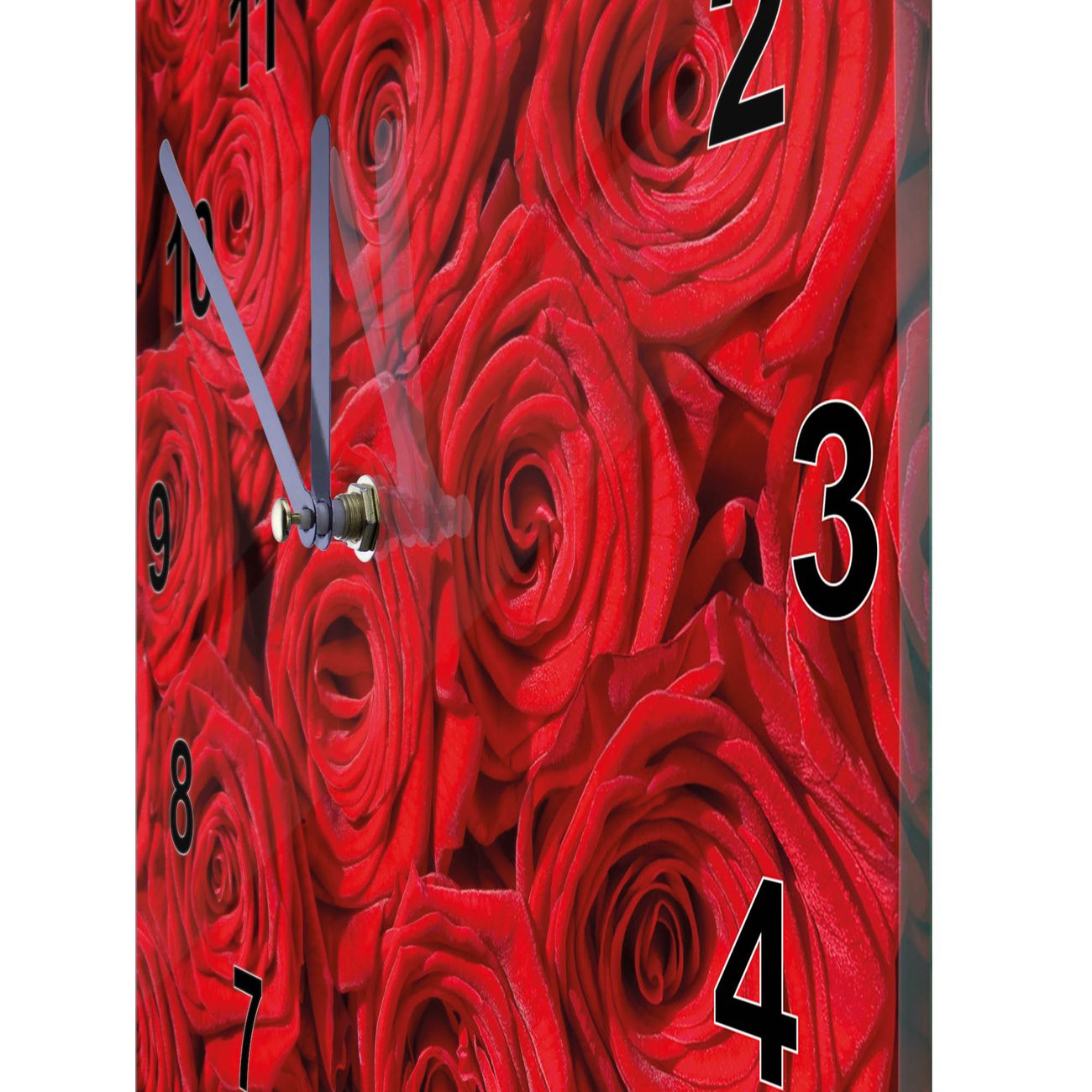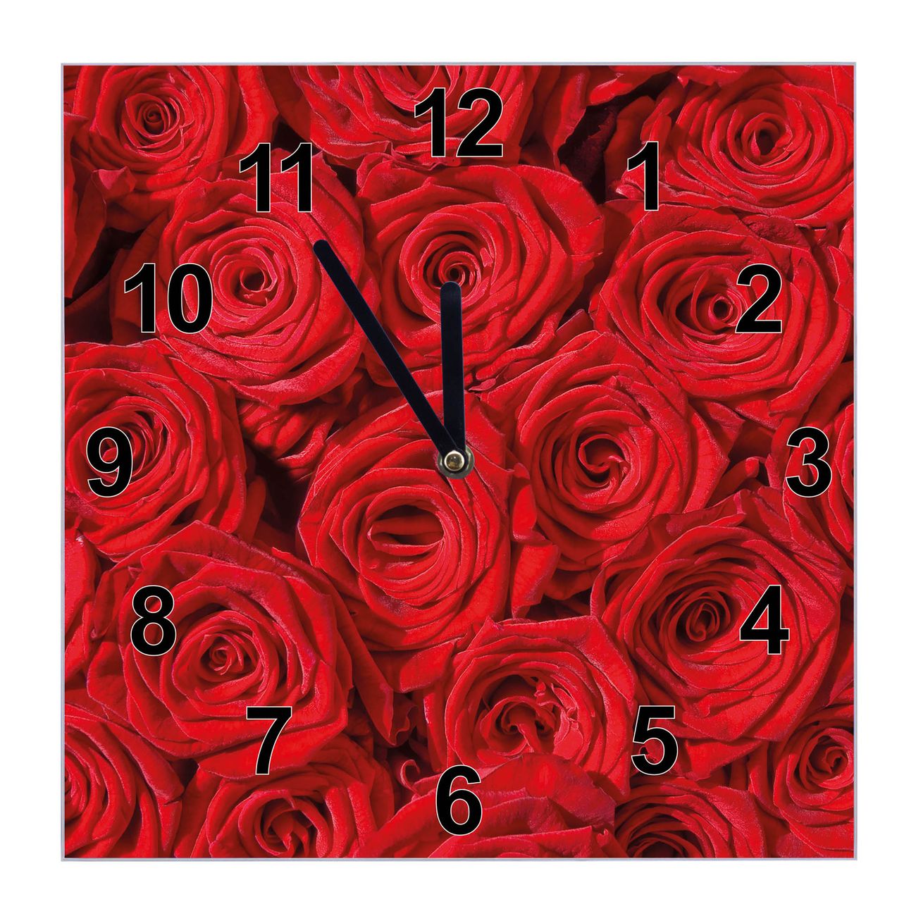 FUNKTION: Mit der banjado Wanduhr aus Glas mit dem Motiv Rosenbett behalten Sie die Zeit immer im Blick, stilsicher und zuverlässig erkennen Sie auf einen Blick was die Stunde geschlagen hat. DESIGN: Die schlichte Form der Uhr sowie das individuelle Motiv passen sich hervorragend jedem Wohnraumkonzept an, egal ob klassisch, nostalgisch oder modern. DETAILS: Die Glasuhr ist quadratisch, 30 x 30cm groß und verfügt über ein geräuscharmes Uhrwerk mit schwarzen Zeigern. Das Motiv Rosenbett befindet sich effektvoll hinter Glas. NUTZEN: Die banjado Glas Wanduhr verbindet Design und Funktion. Perfekt für Küche, Büro, Wohnzimmer oder Kinderzimmer, haben Sie die Zeit im Blick und eine schöne Wanddekoration. BANJADO: Wir fertigen alle Wanduhren auf Bestellung von Hand, erfüllen dabei auch gern Sonderwünsche. Wir wünschen viel Freude bei der Auswahl eines schönen Motivs. Herzlichst, banjado aus Sachsen