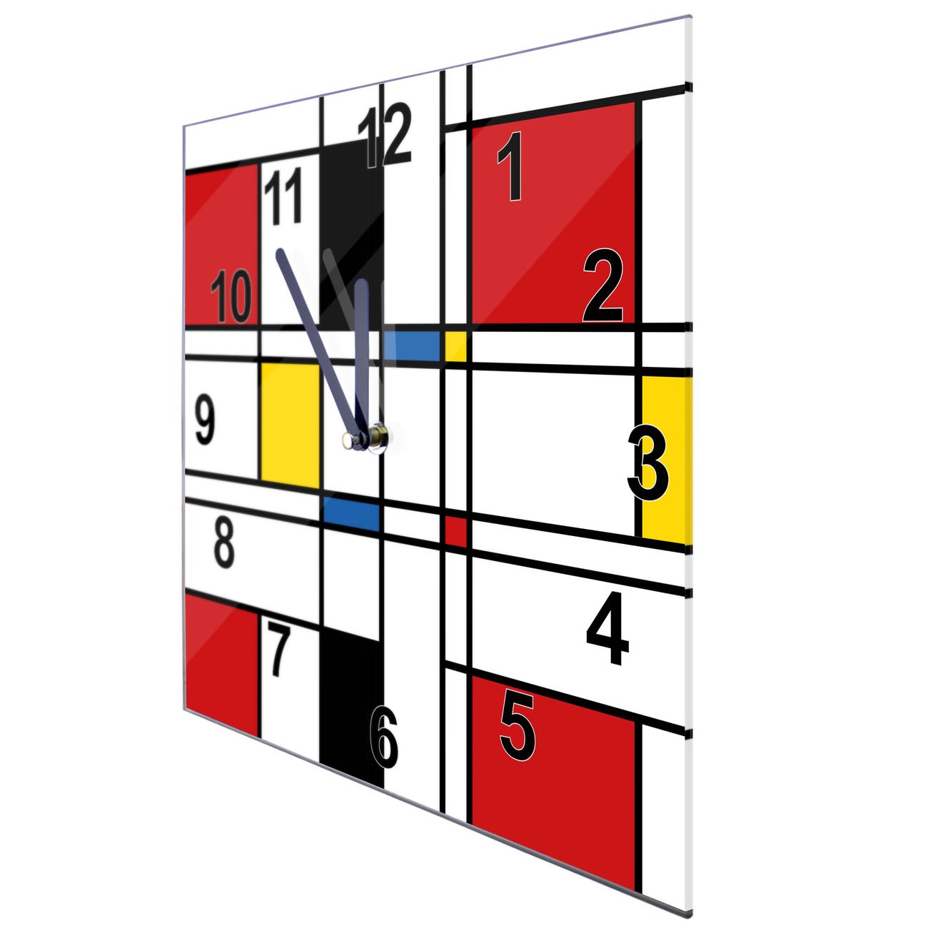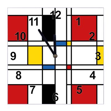 Glasuhr quadratisch Motiv Rot Gelb Blau