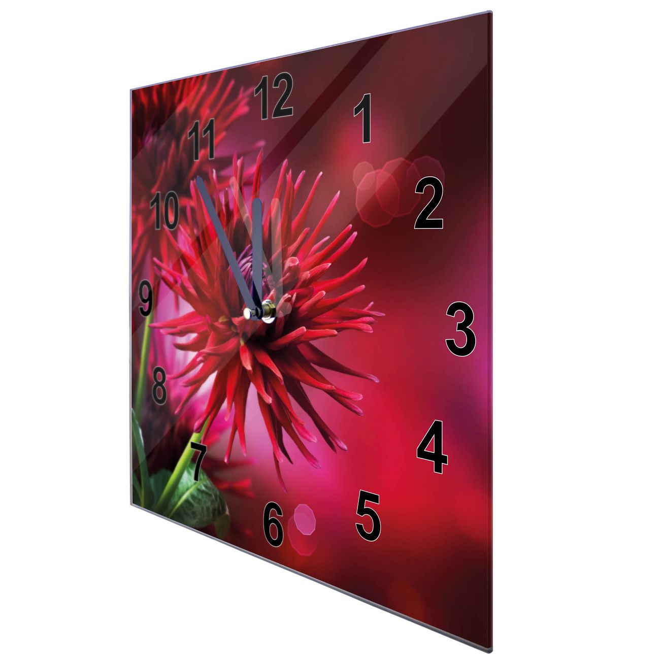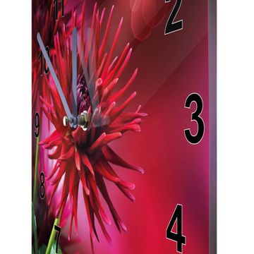 Glasuhr quadratisch Motiv Rote Dahlien