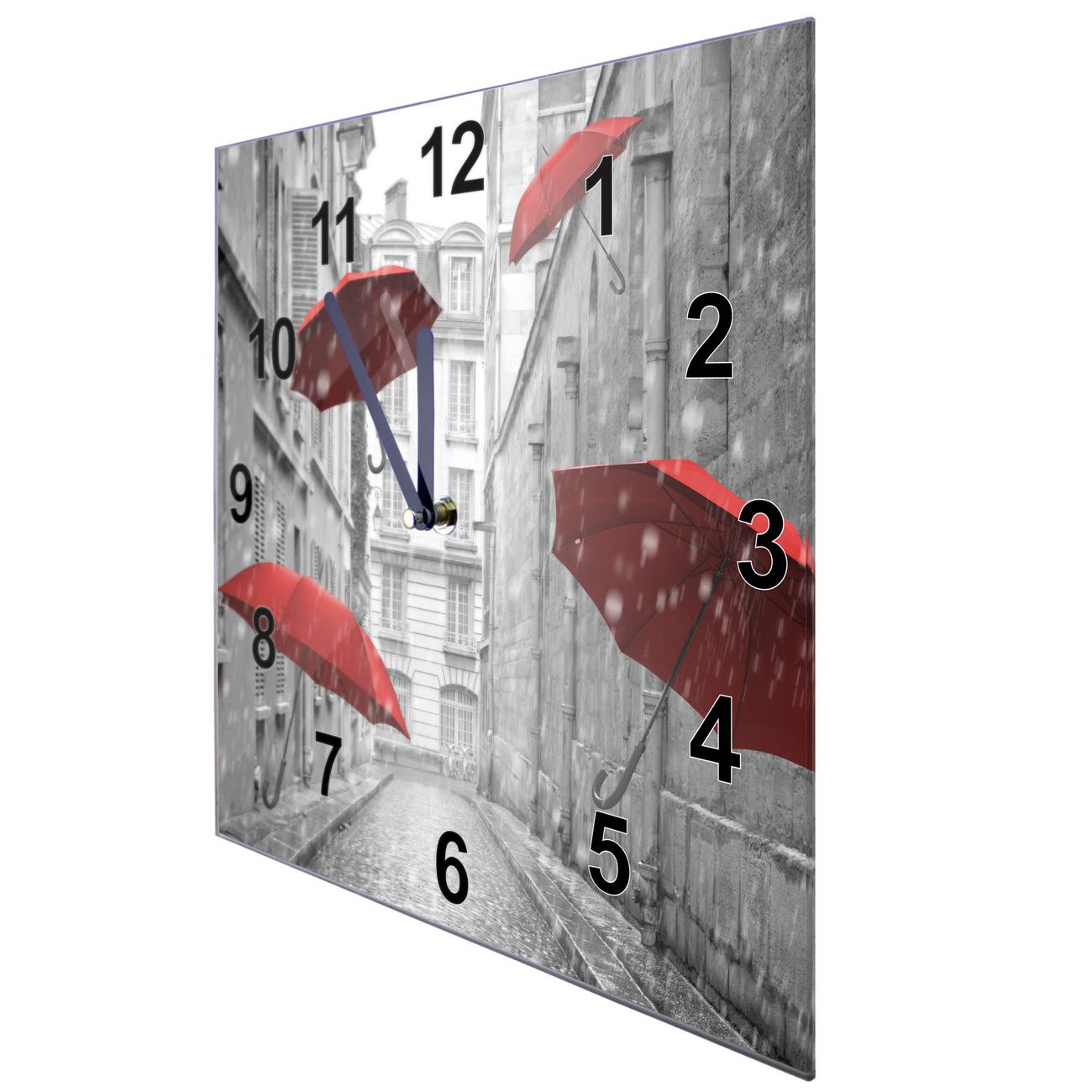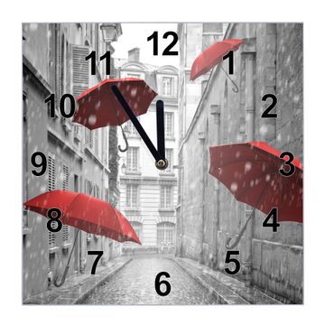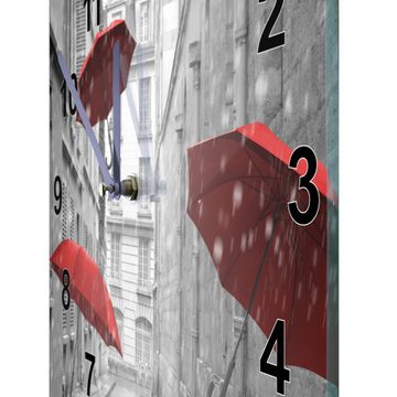 Glasuhr quadratisch Motiv Rote Schirme